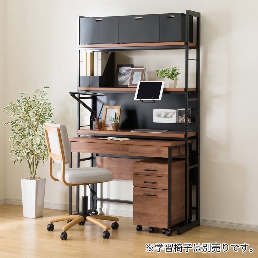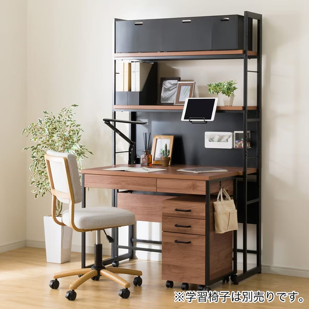 ◆シンプルで使いやすいデザインと高い収納力が魅力のシェルフデスクです。◆ナチュラルな木目調の天板とスチールフレームの組み合わせが、さまざまなお部屋に調和します。