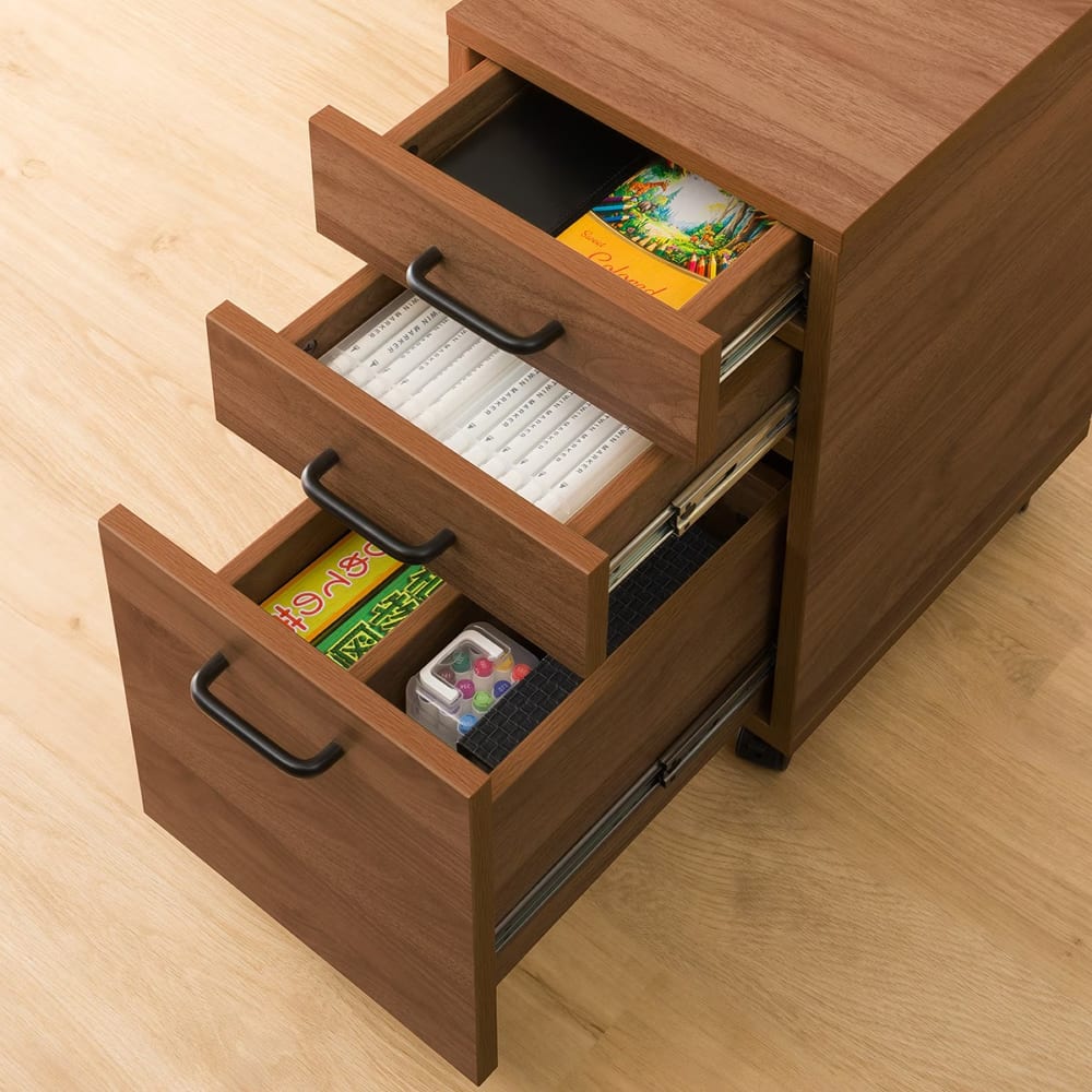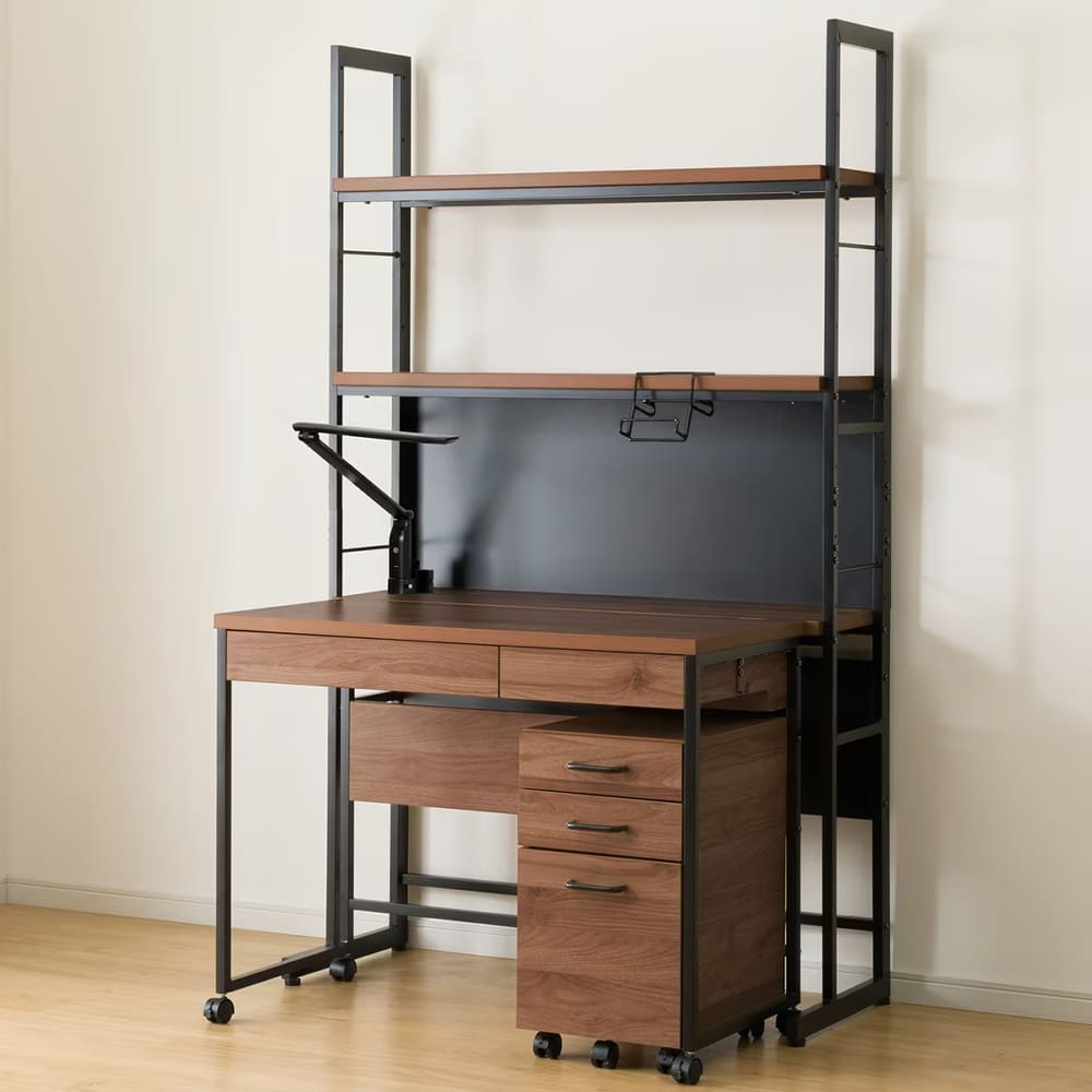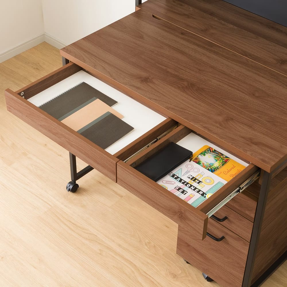 ◆ワゴンや引出しには書類や小物を整理でき、ライト付きで手元も明るく快適。