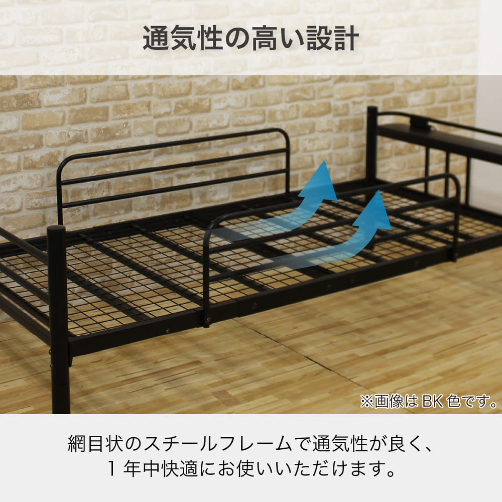 ◆ベッド側面には、小物等をチョイ掛けできるスチールネットが付いています。
