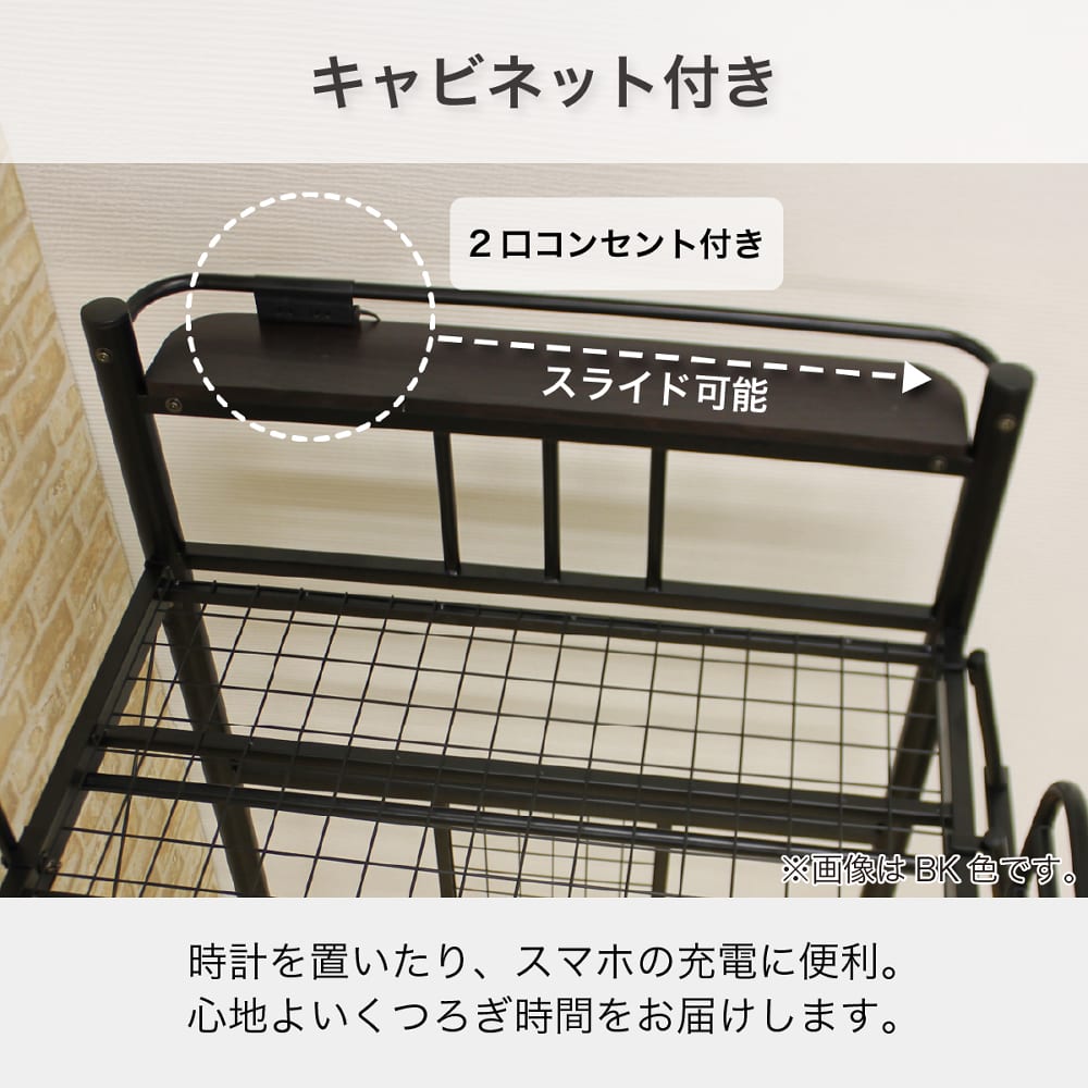 ◆左右にスライドして自由な位置に調節できる、携帯電話の充電に便利な2口コンセント付です。