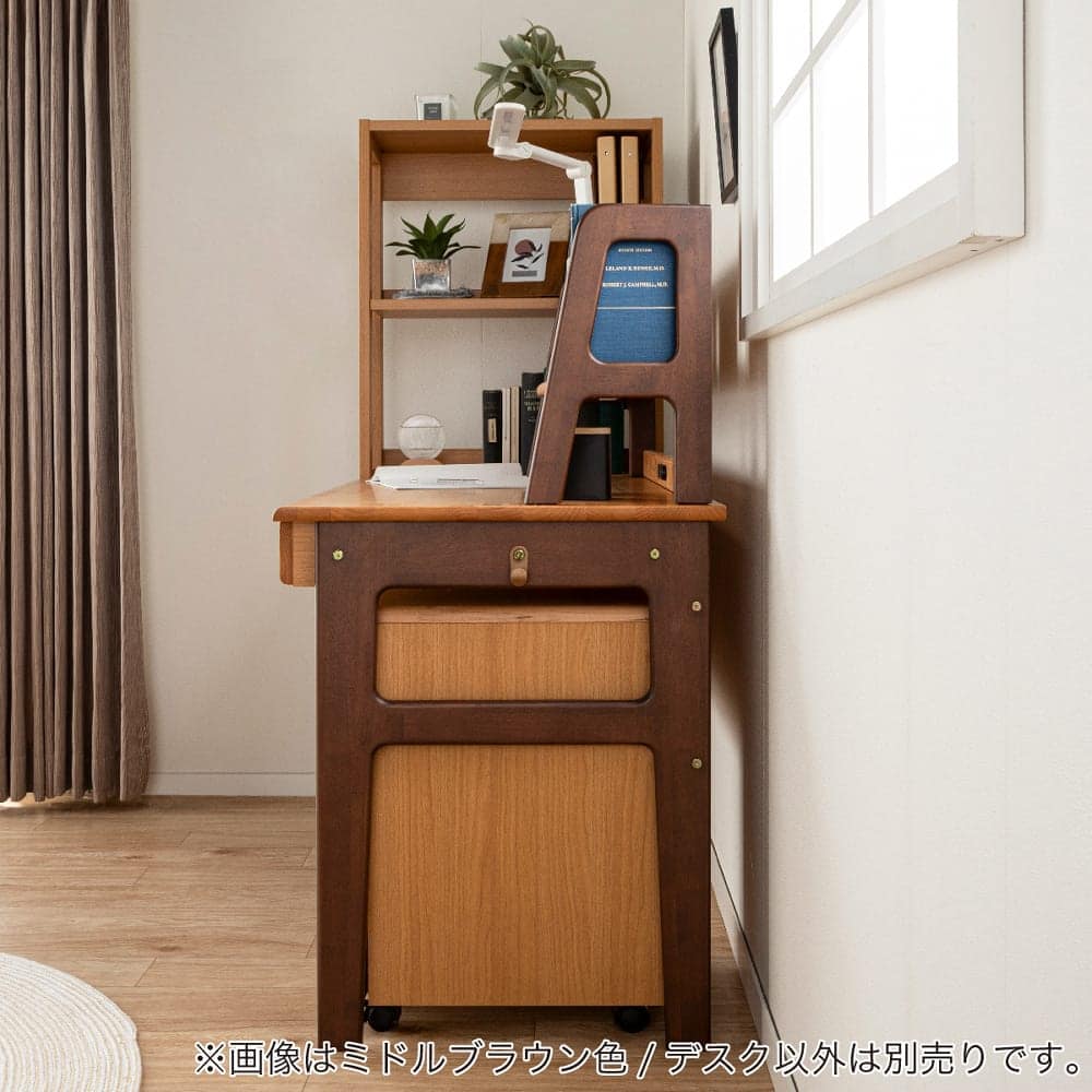【商 品】棚付きデスク(平机+上棚+ワゴン)【カラー】天板:ライトブラウン+脚:ミドルブラウン