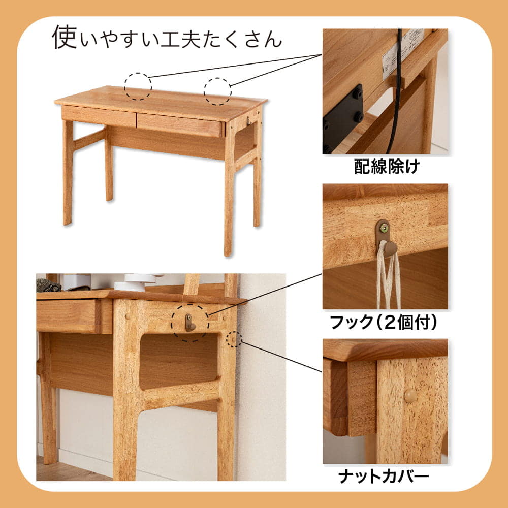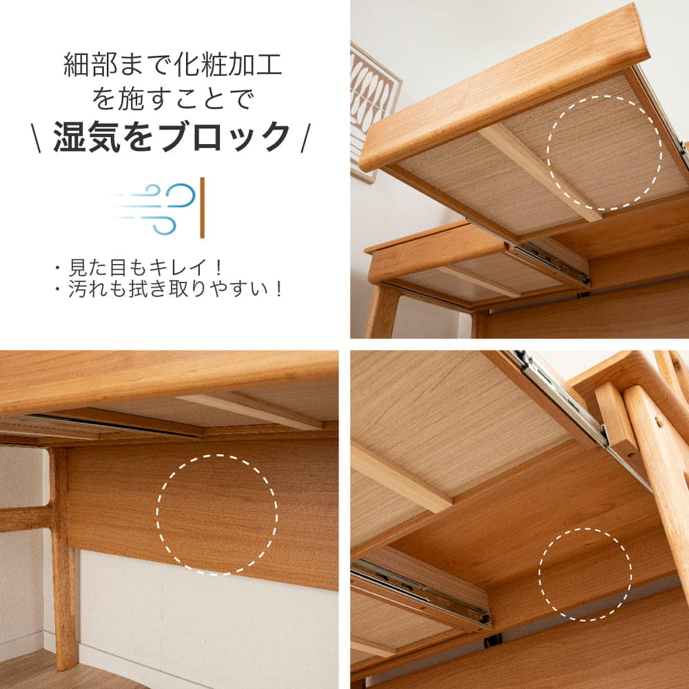 天然木アルダー材を使用した天板は、自然な風合いと優しい手触りが魅力です。