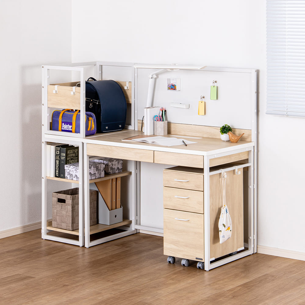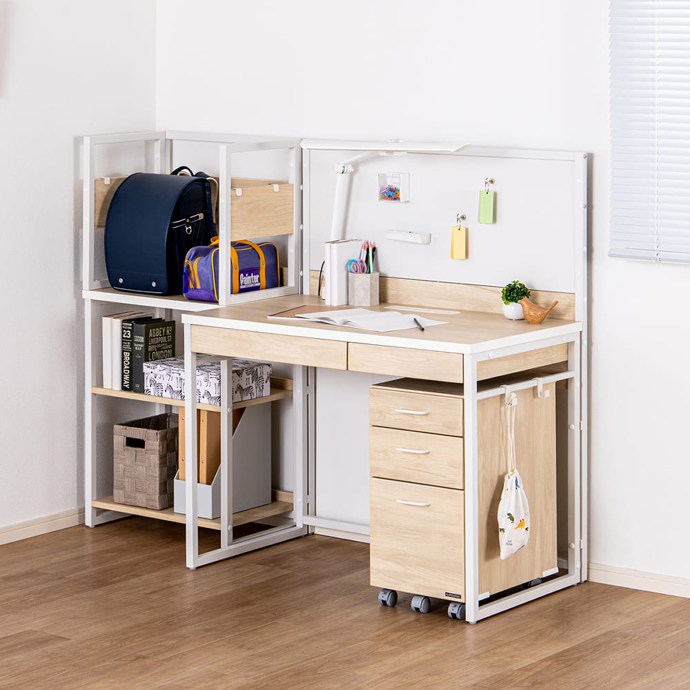 棚付きデスク&シェルフセットカラー:ホワイトウォッシュ/ホワイト