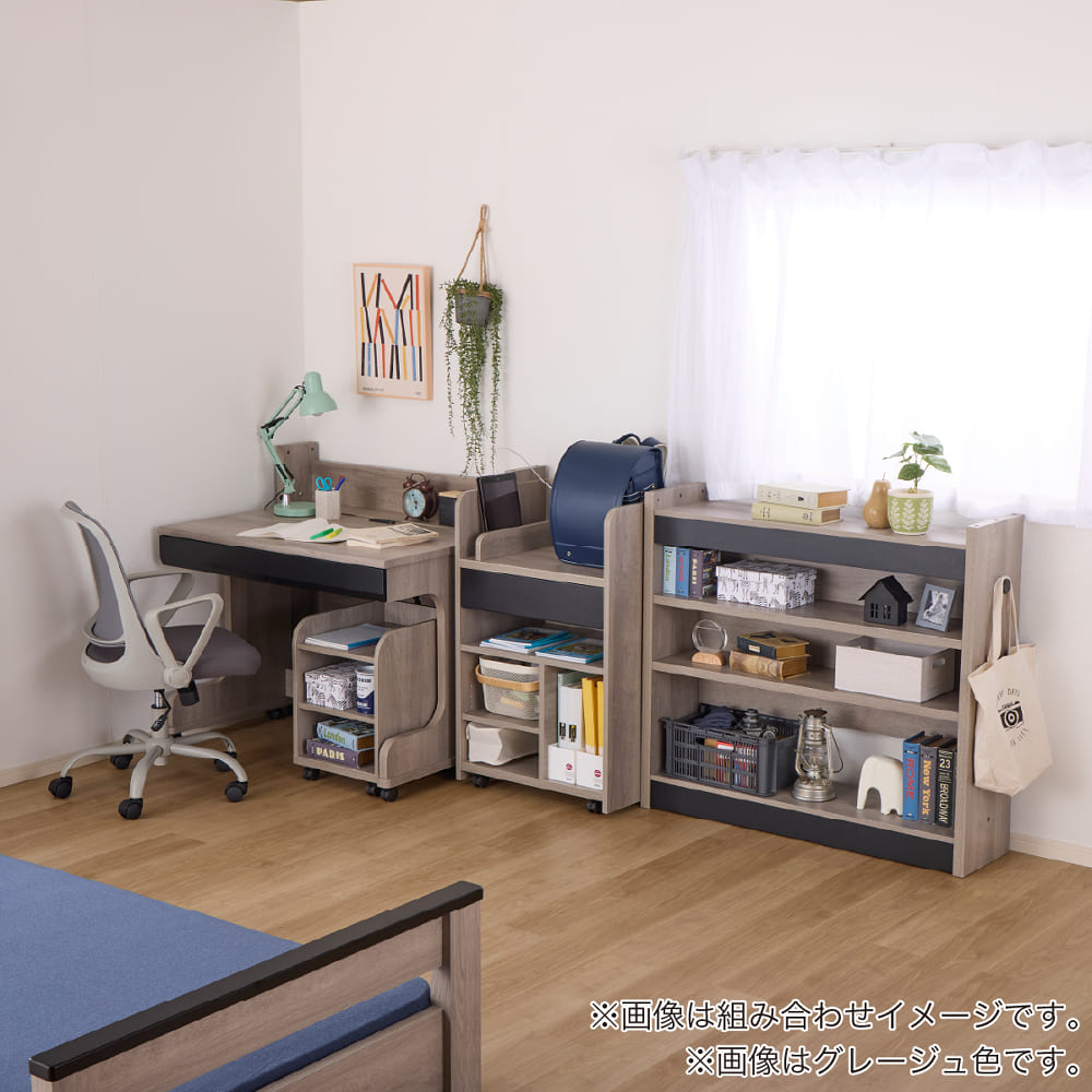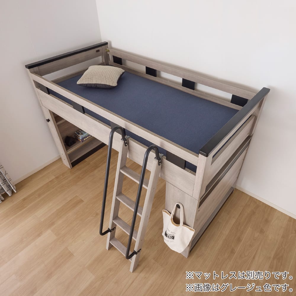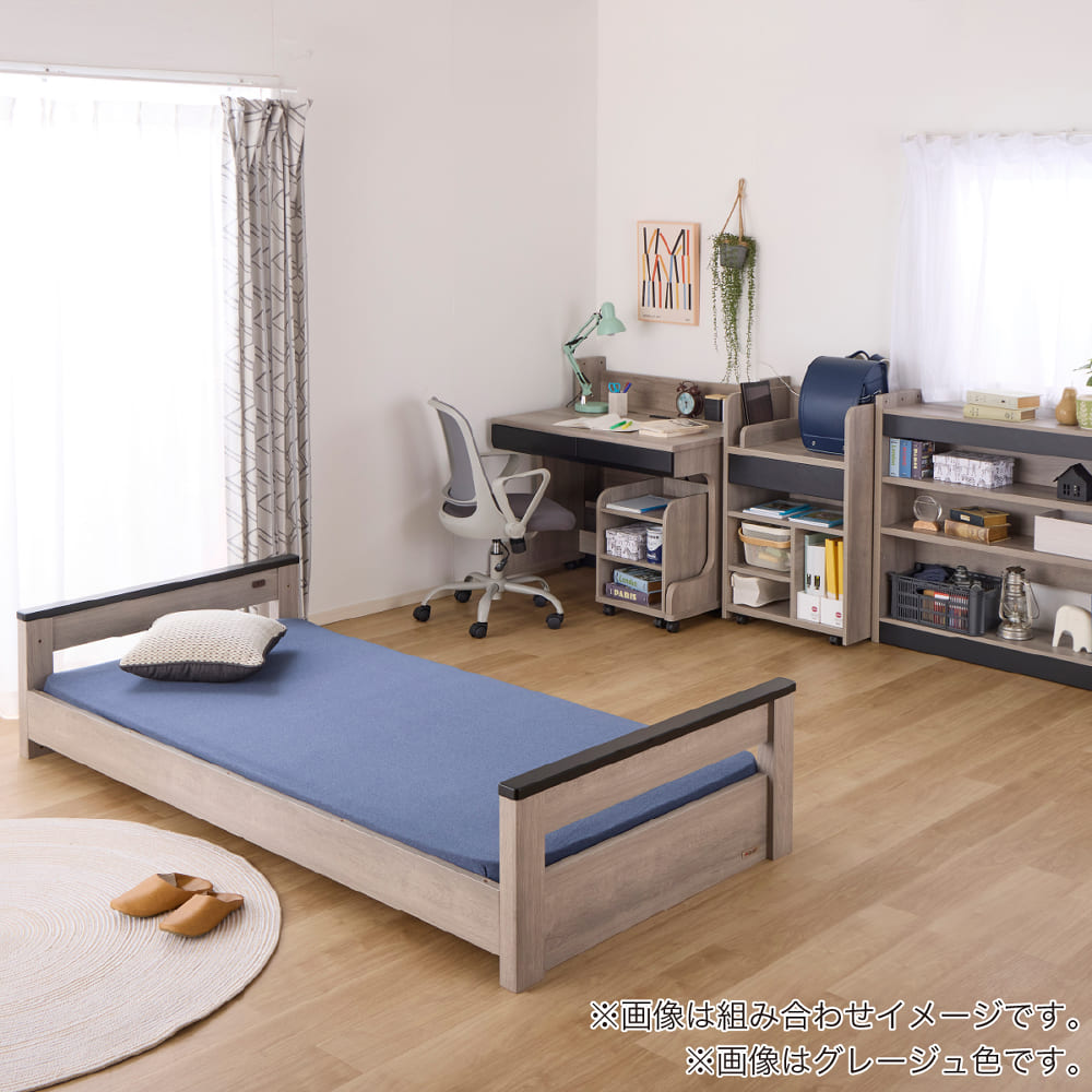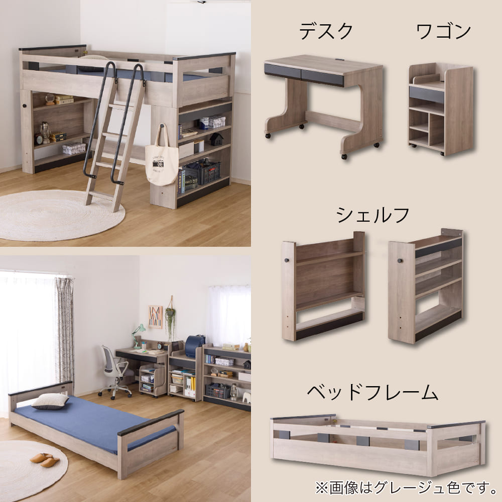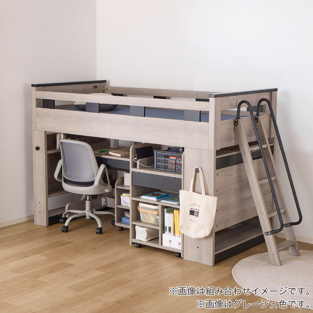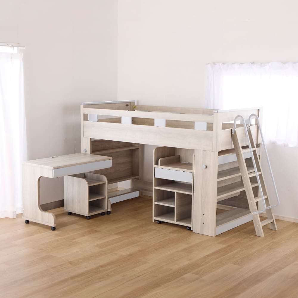 ミドルシステムベッド カレ・ド 4点セット ライトグレー(ミドルベッド・デスク・ワゴン・ランドセルラック)
