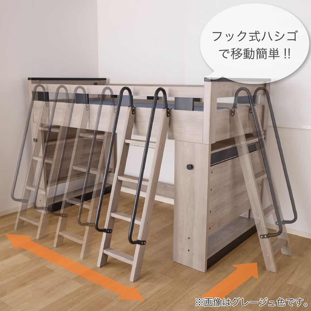 ◆選べるはしご掛け位置:フット面にもはしごが掛けられるので、お部屋のレイアウトの幅が広がります。