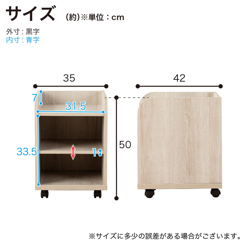 ◆【ワゴン】キャスター付き(ストッパー付は前側2箇所)、中央棚は可動式棚となります。有効奥行39cm