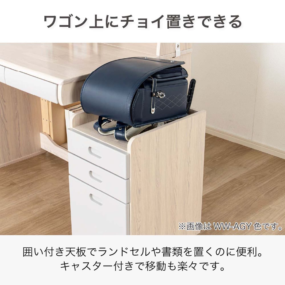 ◆ワゴン天板に落下防止囲い板を付けることで、ランドセルや勉強道具を安心して置けます。