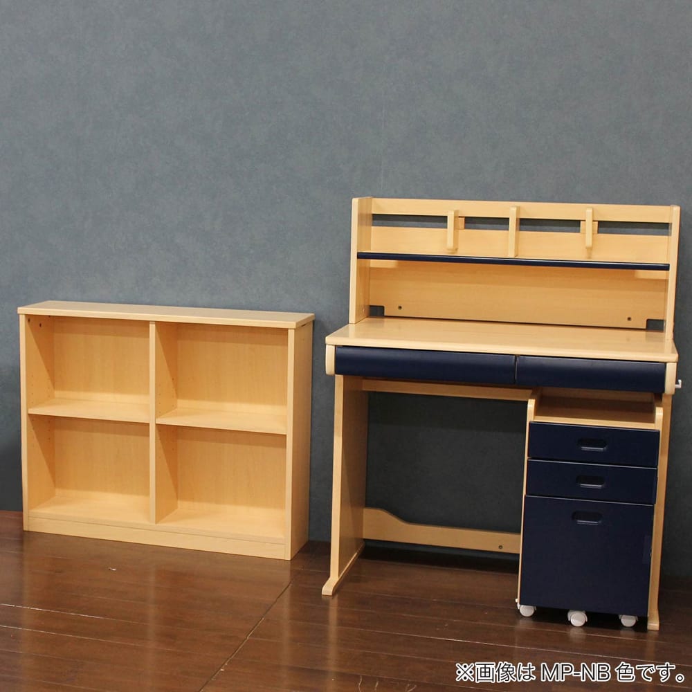 ◆書棚の棚板2枚は、上下可動式で本やノートのサイズに合わせて調整ができます。