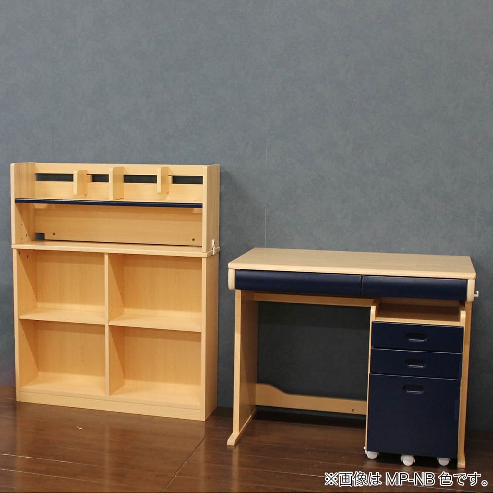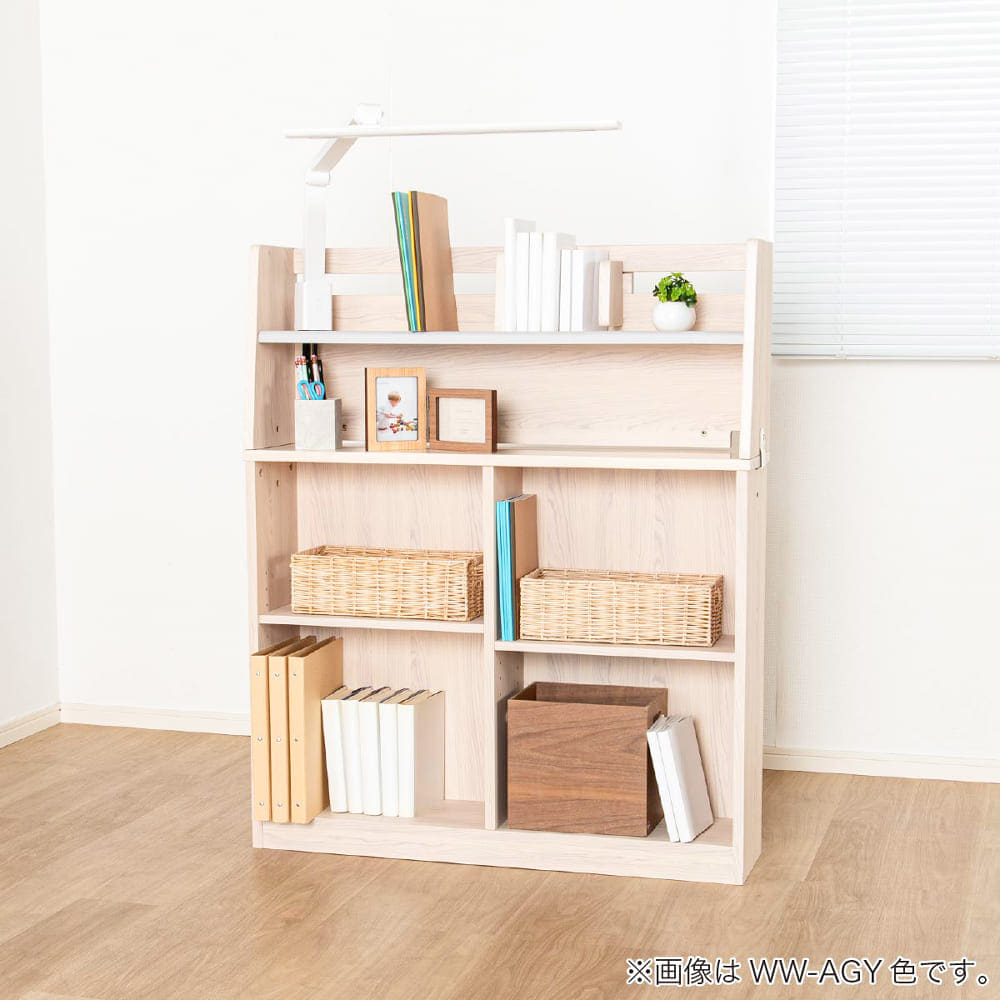 ◆書棚の棚板2枚は、上下可動式で本やノートのサイズに合わせて調整ができます。