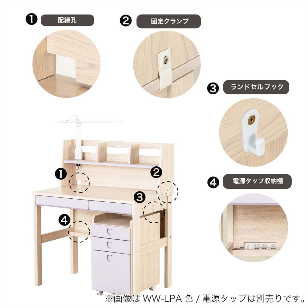 ◆ワゴン天板に落下防止囲い板を付けることで、ランドセルや勉強道具を安心して置けます。