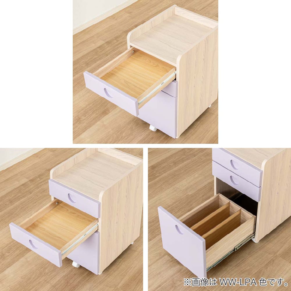 ◆ワゴン天板に落下防止囲い板を付けることで、ランドセルや勉強道具を安心して置けます。