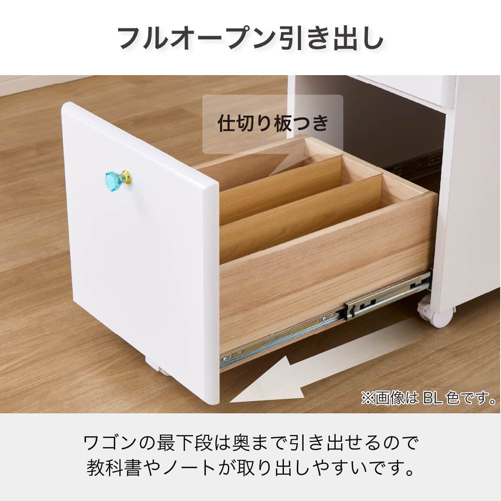 ◆ワゴンの最下段引き出しがフルオープン仕様で、奥の物を簡単に出し入れができます。