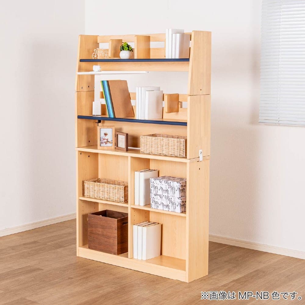 ◆書棚の棚板2枚は、上下可動式で本やノートのサイズに合わせて調整ができます。