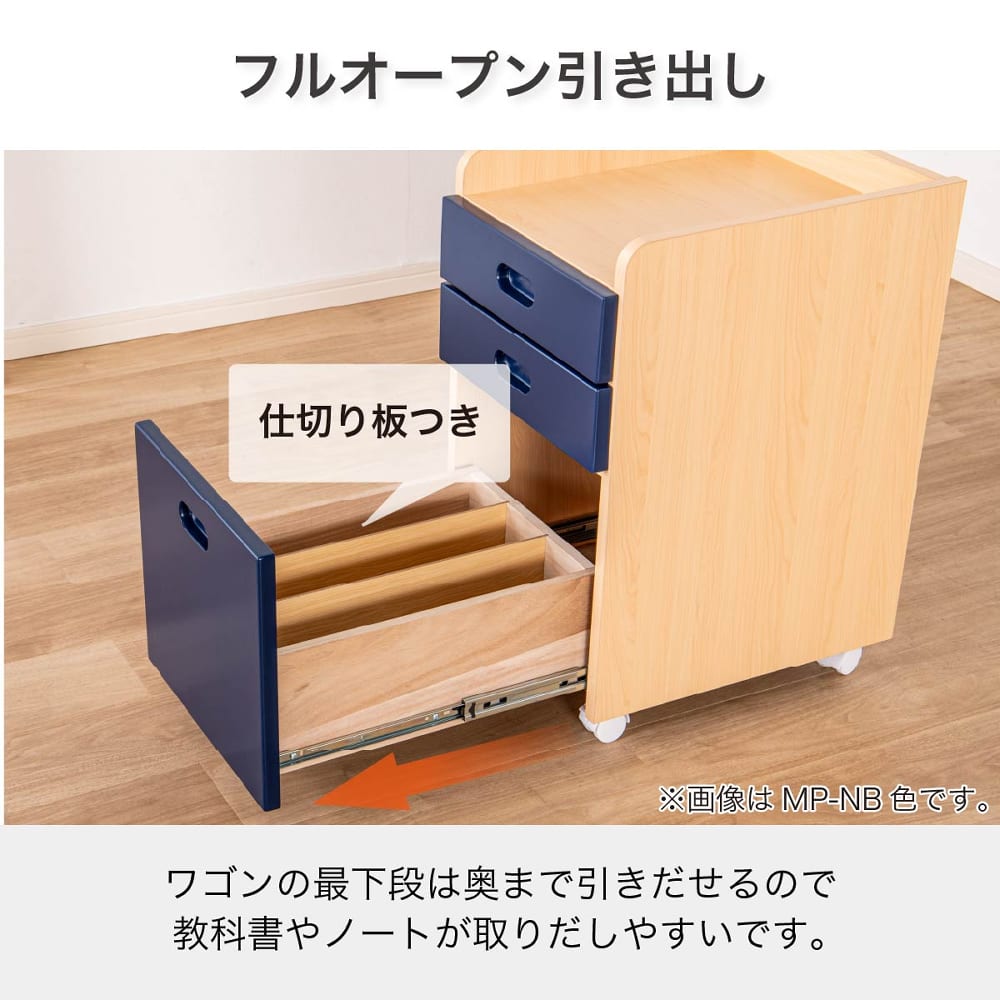 ◆ワゴン天板に落下防止囲い板を付けることで、ランドセルや勉強道具を安心して置けます。
