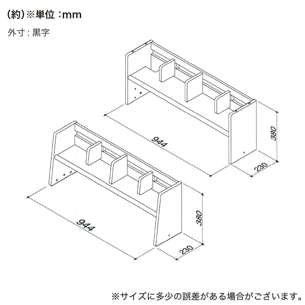 ◆書棚の棚板2枚は、上下可動式で本やノートのサイズに合わせて調整ができます。