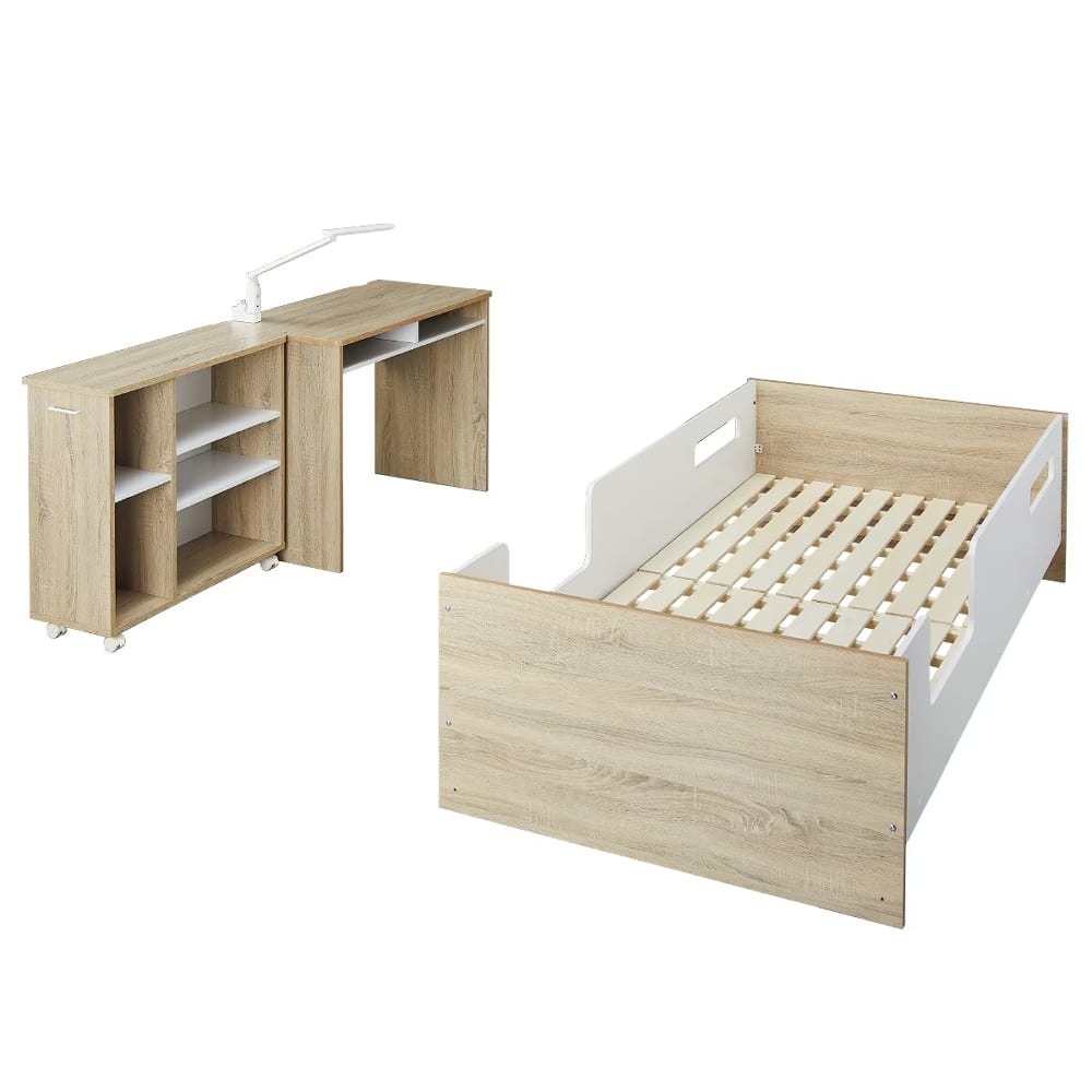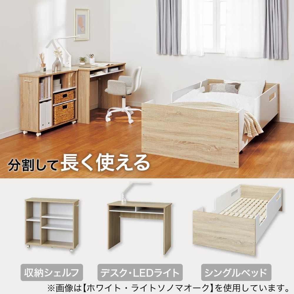 ◆デスク、ベッド、シェルフがひとつになった便利な3点セット。◆限られたスペースを有効活用できるデザインで、コンパクトながら機能的。