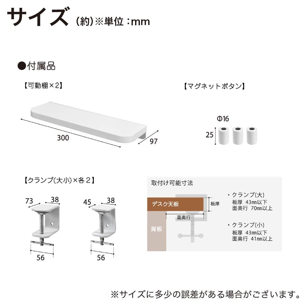◆デスクパネルは可動棚2枚、マグネット3個付属