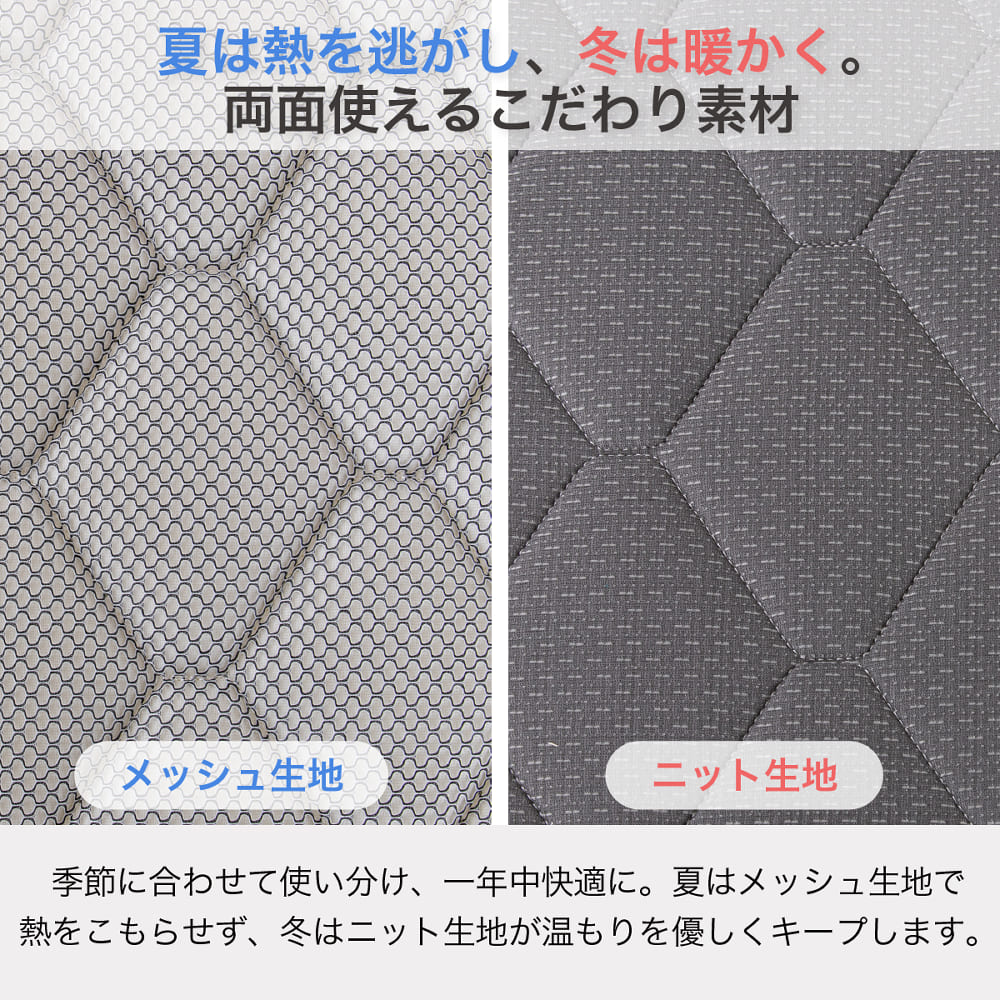 おもて面はニット、うら面はメッシュで季節に応じて快適に使えます。