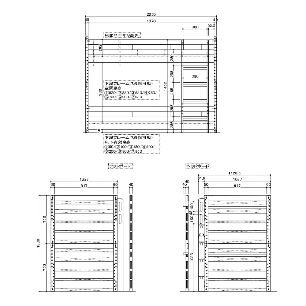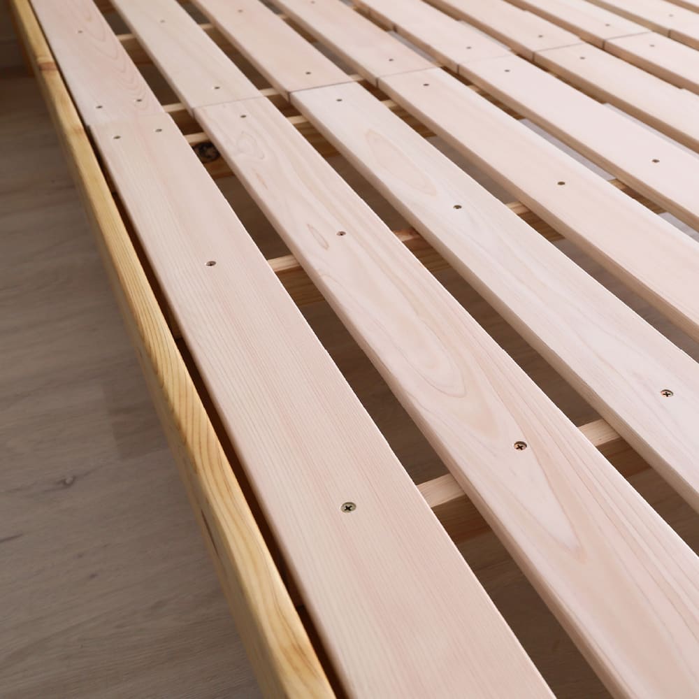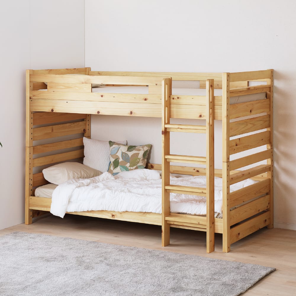 ◆檜無垢材を使用した二段ベッドです。檜の香りがリラックス効果をもたらしてくれます。◆下段の床板は7段階で調節が可能。シングルベッド2台にも変更可能です。