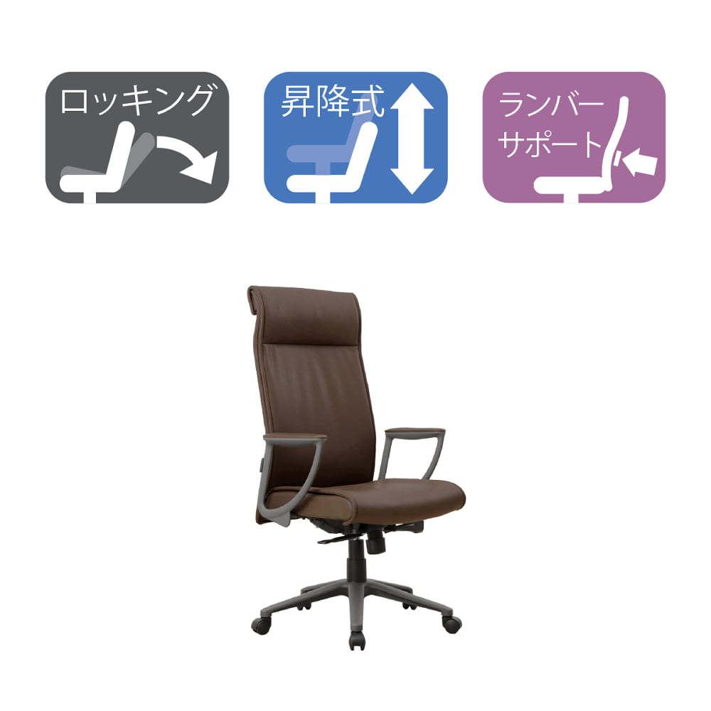 ◆滑らかな質感の合成皮革を使用した張り込みタイプデスクチェアです。◆昇降、ロッキング機能付き、座面高は42cm〜50pの間で調整可能、ロッキング状態での固定ができます。