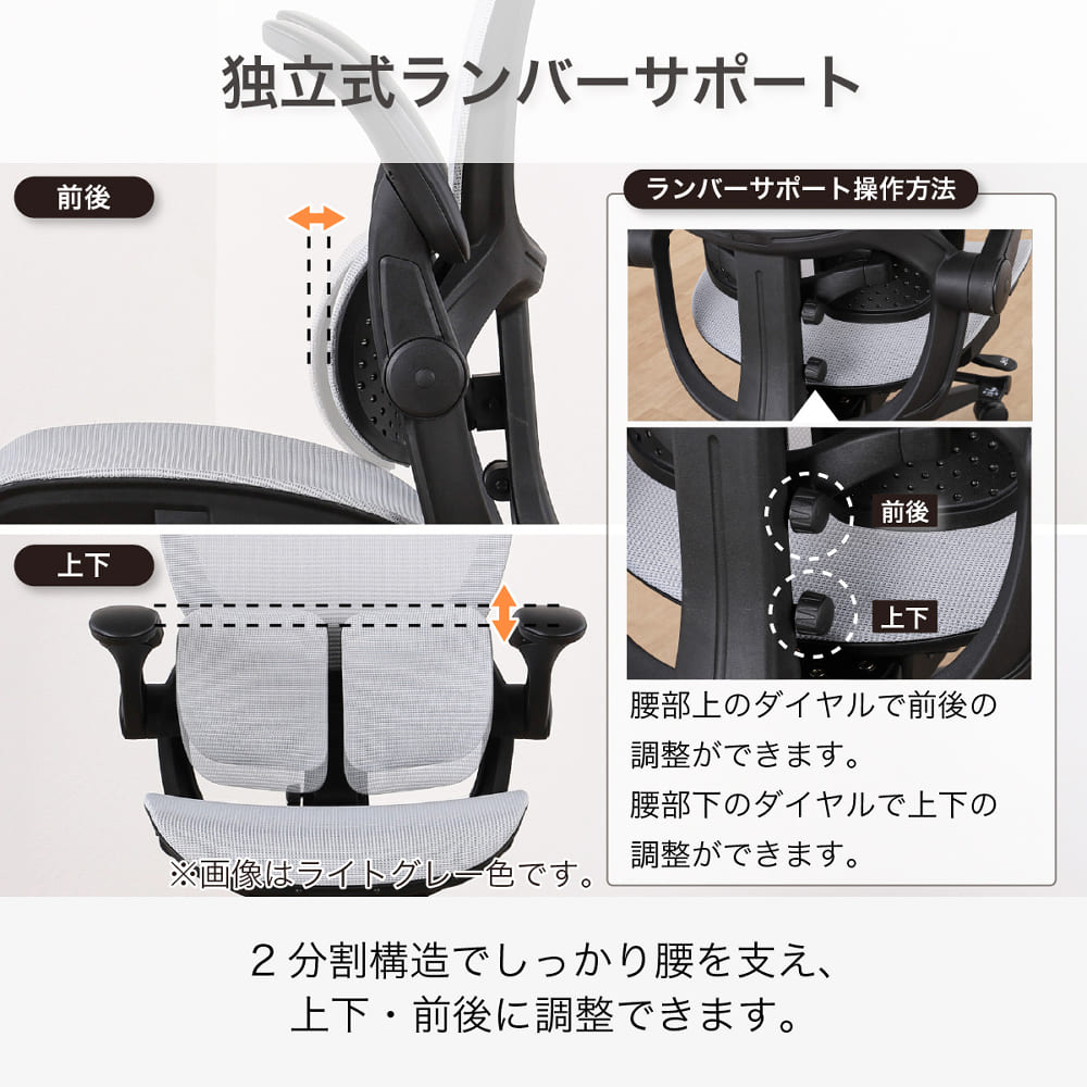 2分割構造で腰をしっかり支えます。