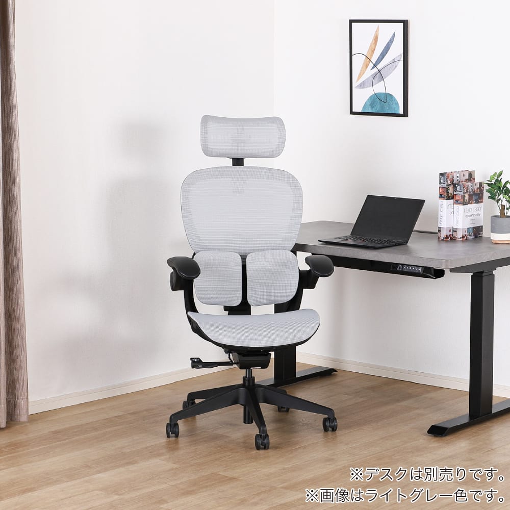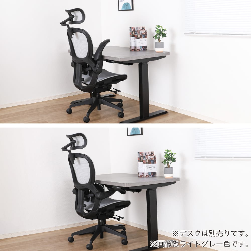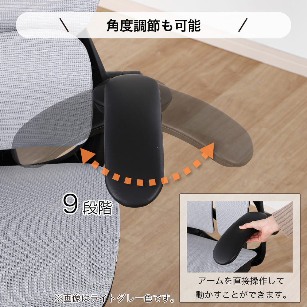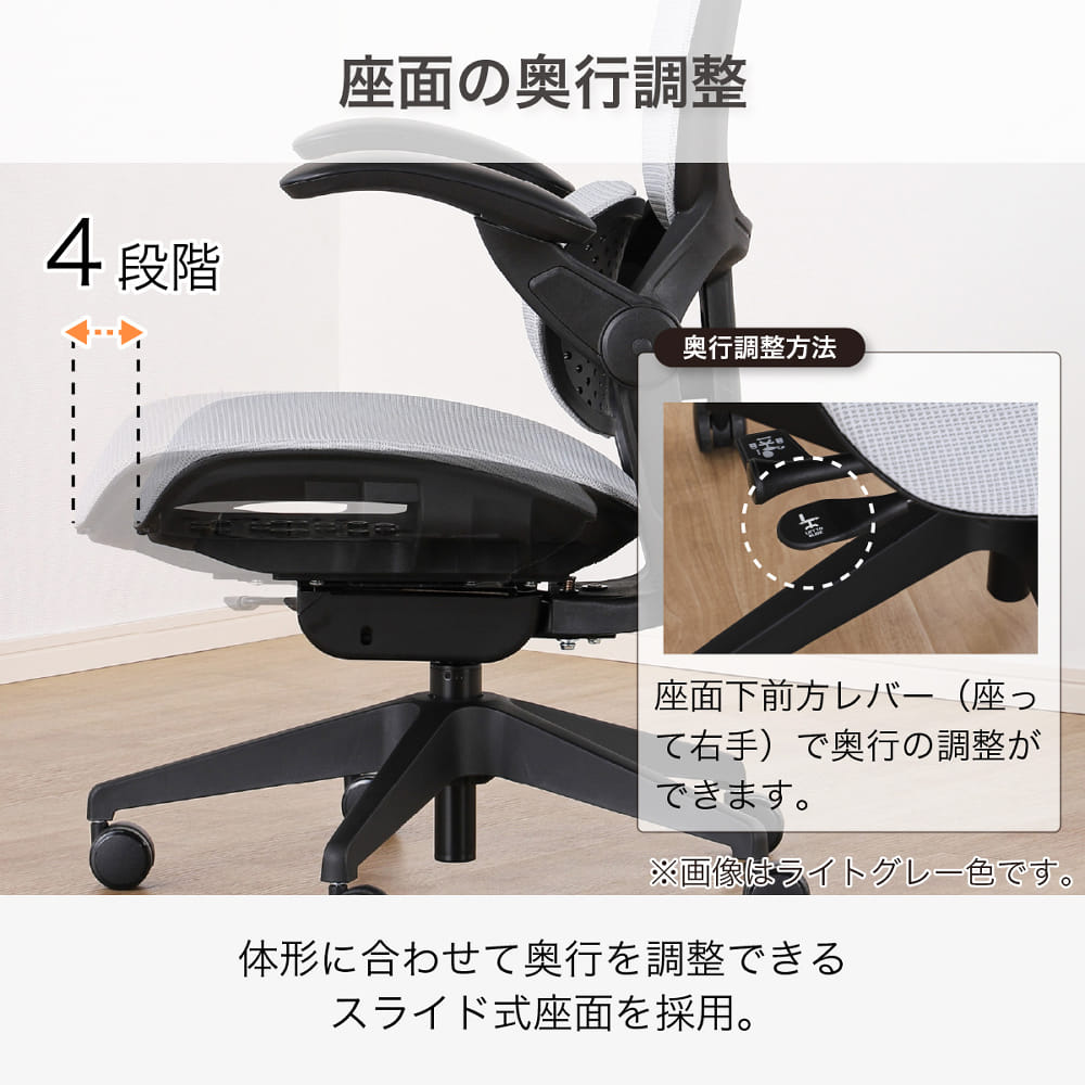 座面スライド機能(奥行調整)と可動式アームレストと併用することで、身体へのフィット感がさらに高まります。