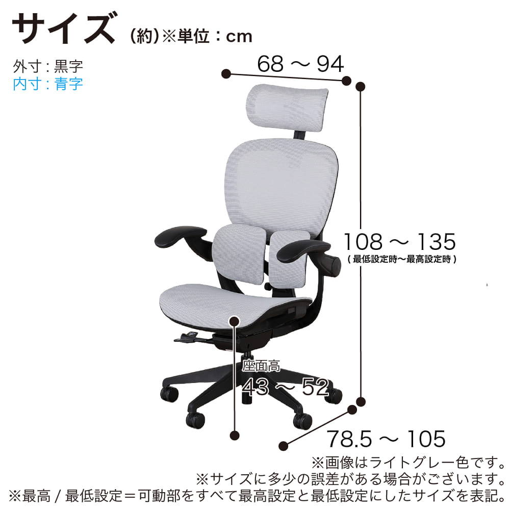 上下・前後の調整ができ、体格や姿勢に合わせてフィットします。