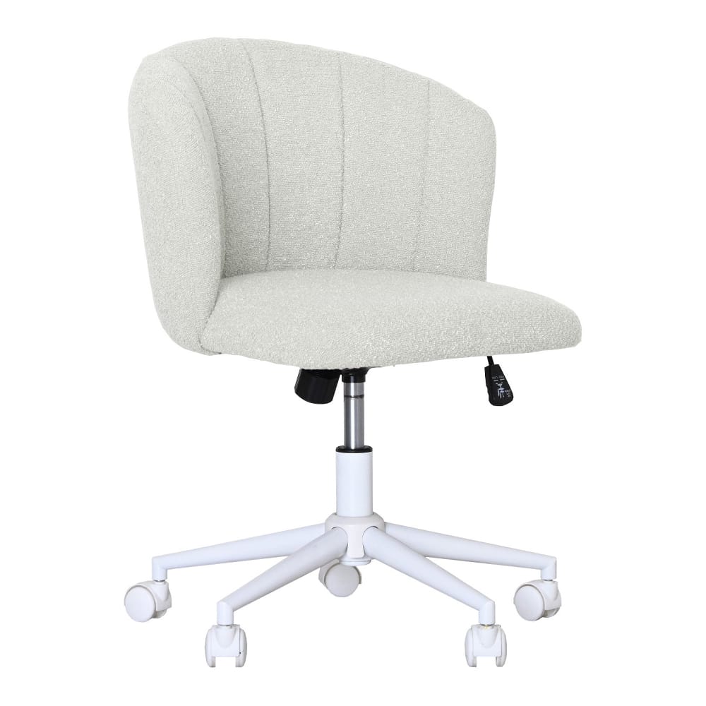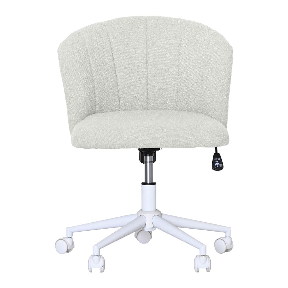 ◆ボア生地仕様でシェル形のデザインにより包み込まれ快適にデスクワークができる◆360度回転可能、机の高さにより調節できるように昇降タイプで高さ調整可能
