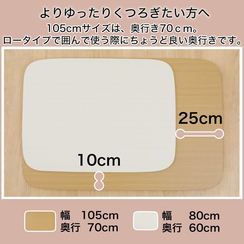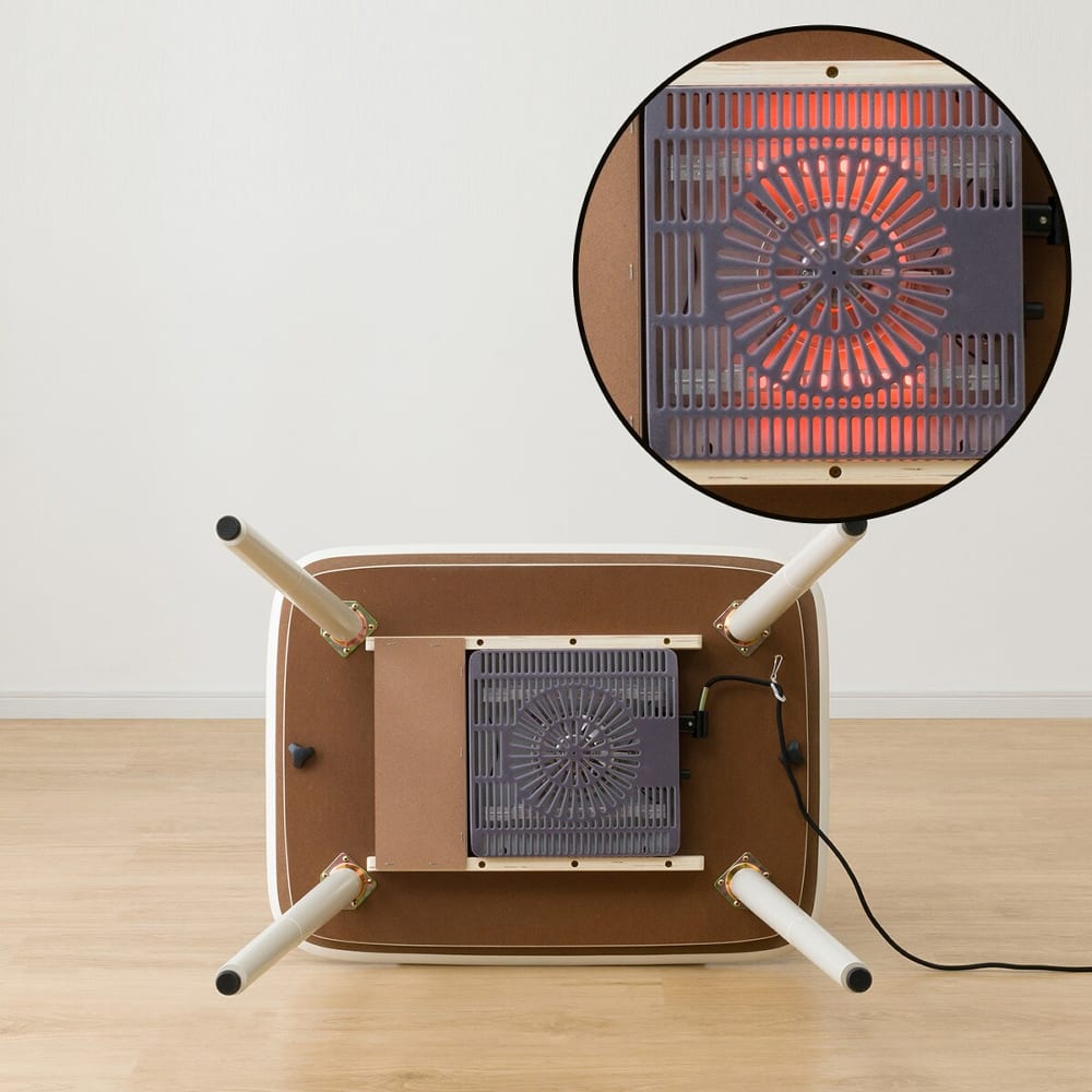 ◆こたつ本体にすべりにくい加工を施すことにより、こたつ布団を使用した際に天板がズレてしまうトラブルを軽減しました。こたつを使用しない春夏シーズンも、一年中お使いいただけます。