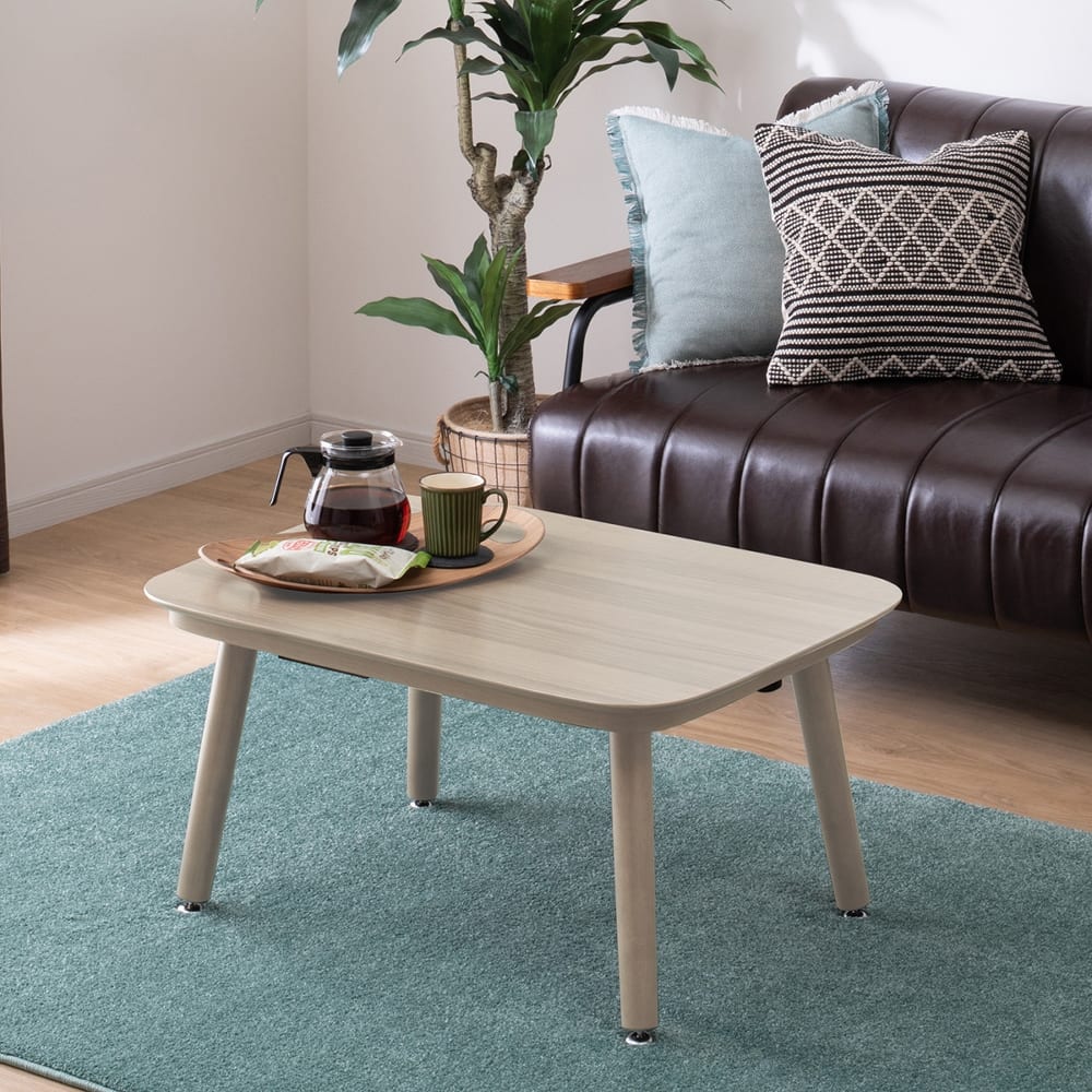 ◆こたつ本体にすべりにくい加工を施すことにより、こたつ布団を使用した際に天板がズレてしまうトラブルを軽減しました。こたつを使用しない春夏シーズンも、一年中お使いいただけます。