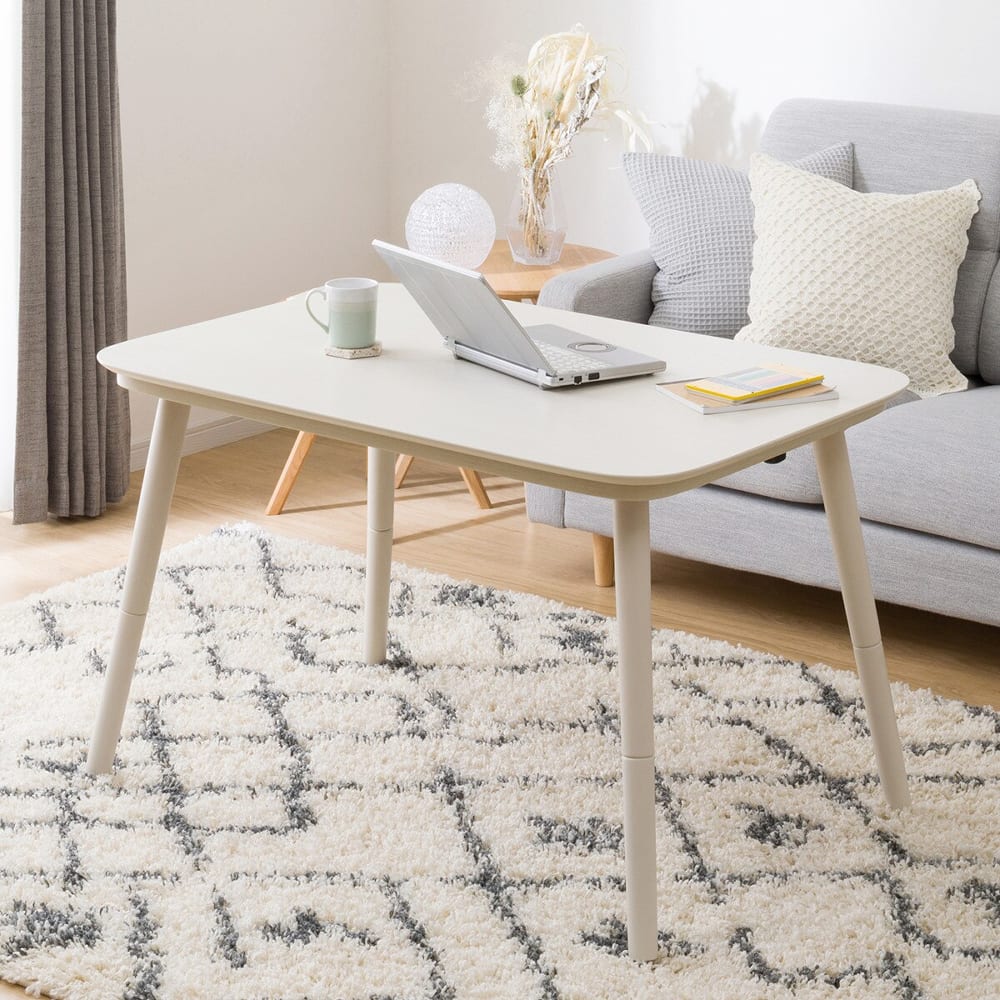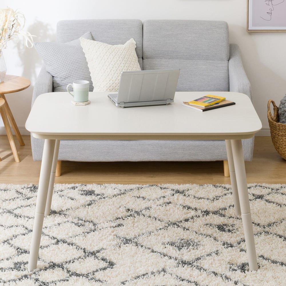 ◆高さが変えられる2wayこたつ。ソファに座っても、床に座っても使用できます。◆ちょうどいいサイズ感で2人でゆったり。ワークデスクとしても活用できます。