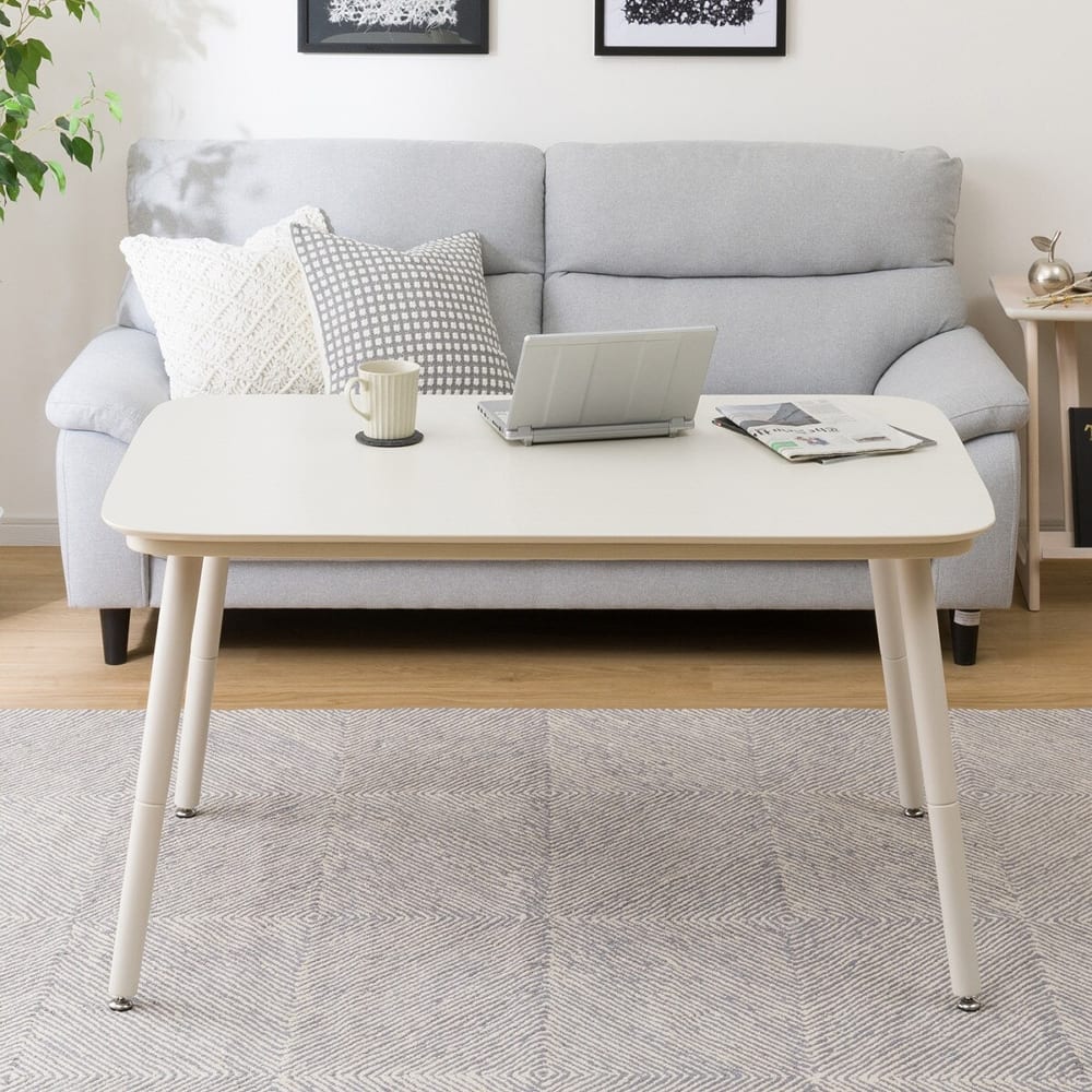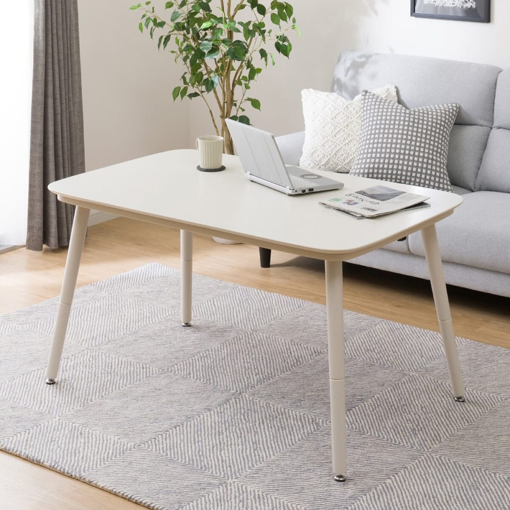 ◆高さが変えられる2wayこたつ。来客時は4人でも鍋を囲めるゆったりサイズ。◆天板が固定できるので、こたつを使用しない春夏シーズンも、一年中使用できます。