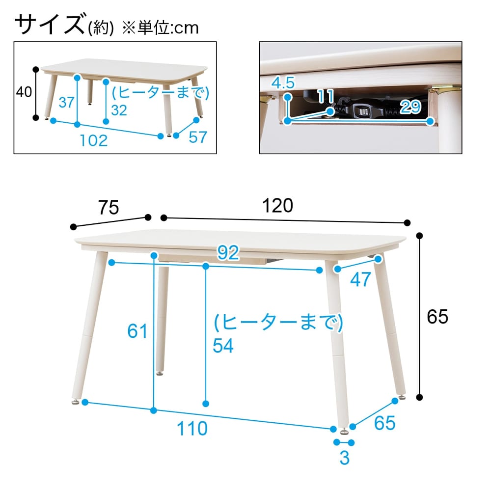 高さ調整こたつ 2WAYコタツ NV03 120 WW <N>