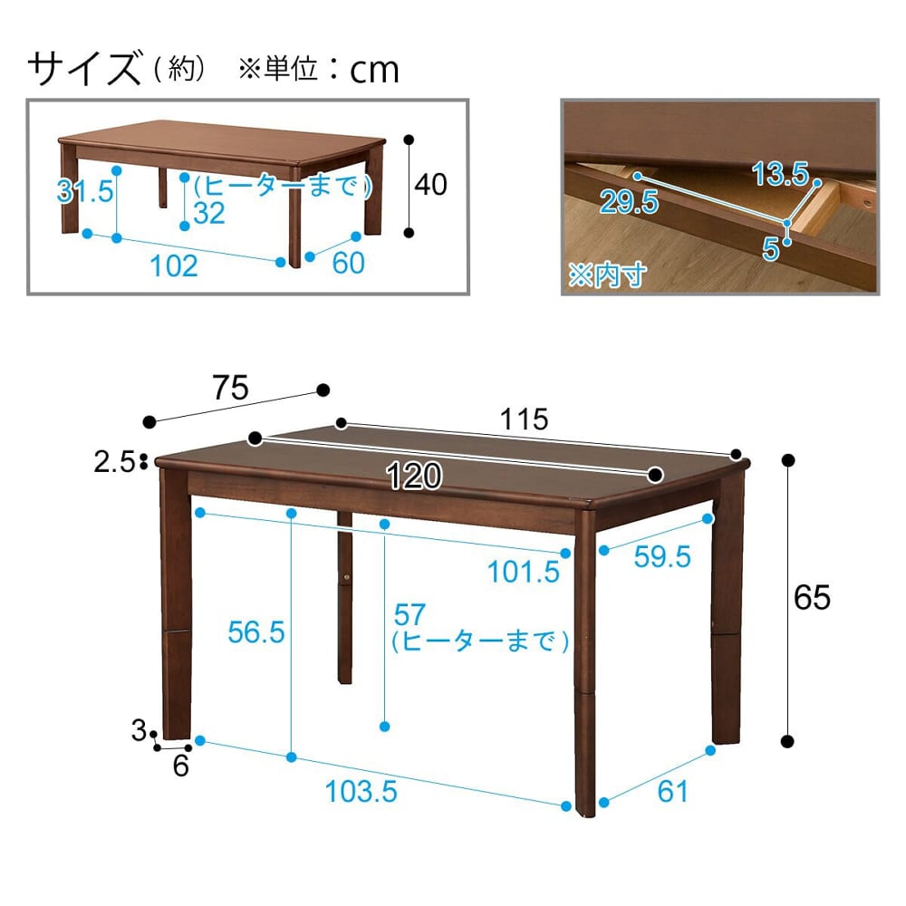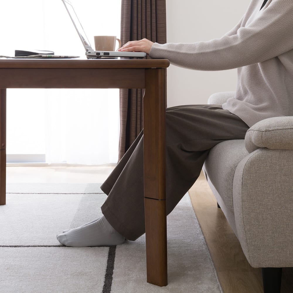 ◆継脚で高さが変えられる2wayこたつです。◆ロータイプで使用時は、継ぎ脚をテーブルに収納できます。高さを変えて、ソファに座っても、床に座っても使用できます。