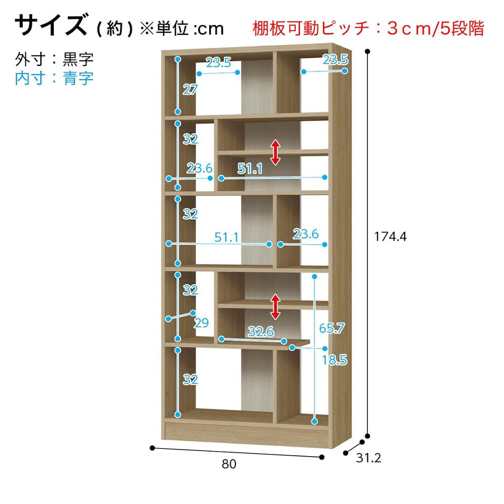 | サイズ: | 幅80×奥行31.2×高さ174.4cm |