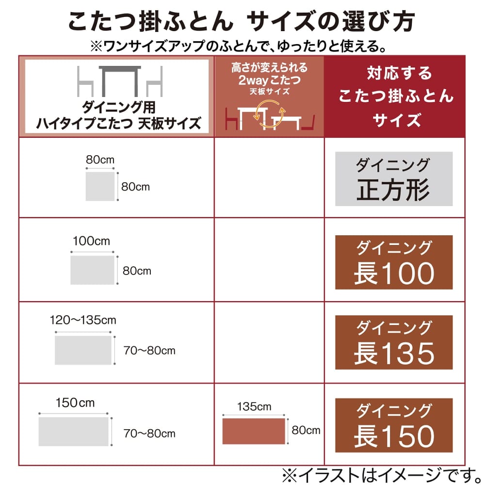 ◆対応こたつ天板サイズ