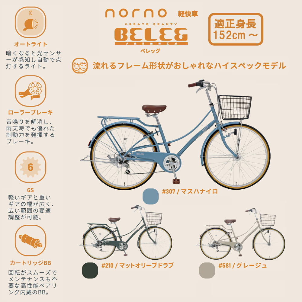 シティサイクル(軽快車)26インチ ベレッグ266 グレージュ【受取方法:店舗受取のみ】