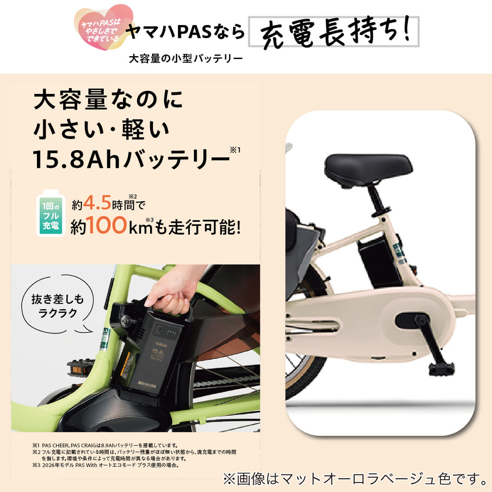 1充電あたりの走行距離の目安:強モード:51km スマートパワーモード:58km オートエコモードプラス:77km