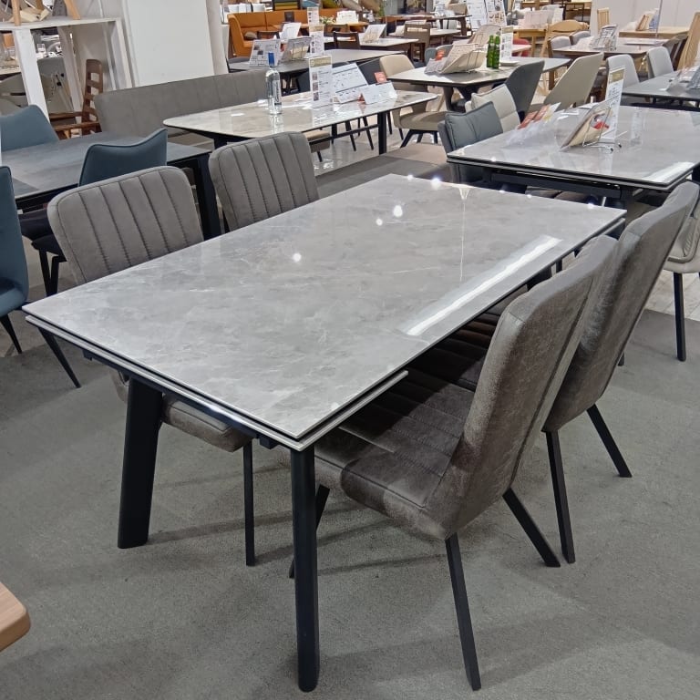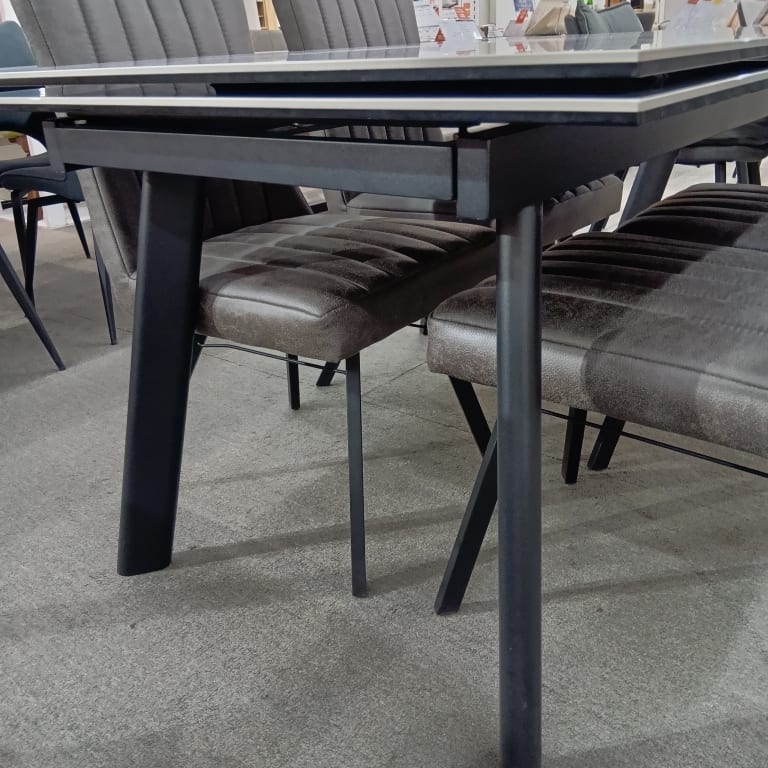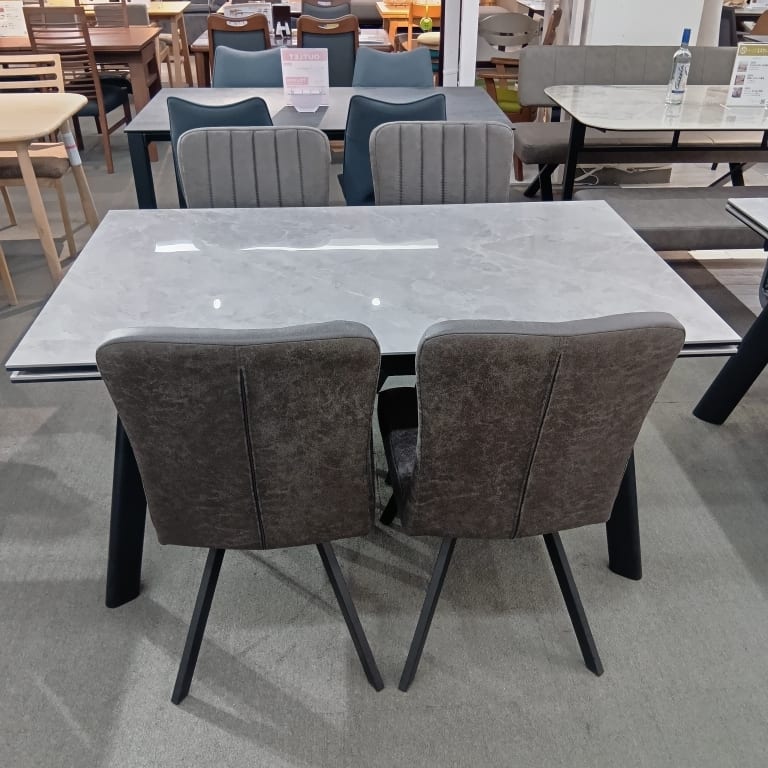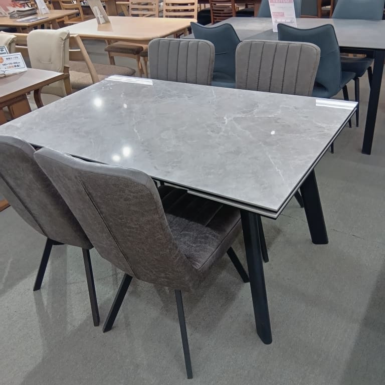 【草加店 関東一部地域限定 展示特価品】 ダイニング5点セット 伸長式ダイニングテーブルグラスティEX140 ダイニングチェア グラナダ BK