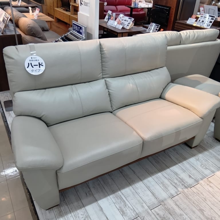 【草加店 関東一部地域限定 展示特価品】 2.5人掛けソファ デビュー079ハード2.5S 本革GY