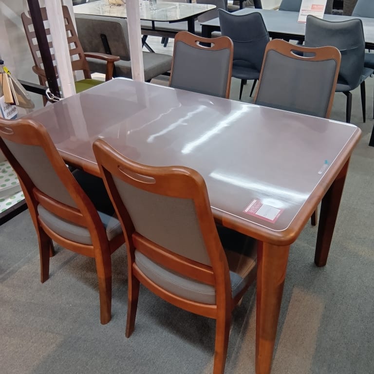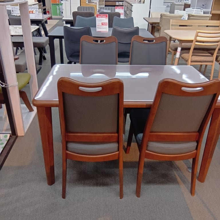【草加店 関東一部地域限定 展示特価品】 ダイニング6点セット(PSマット付き) CCM4 125-75Z 4本脚BR ロード背張り BR×4 PSマット抗菌
