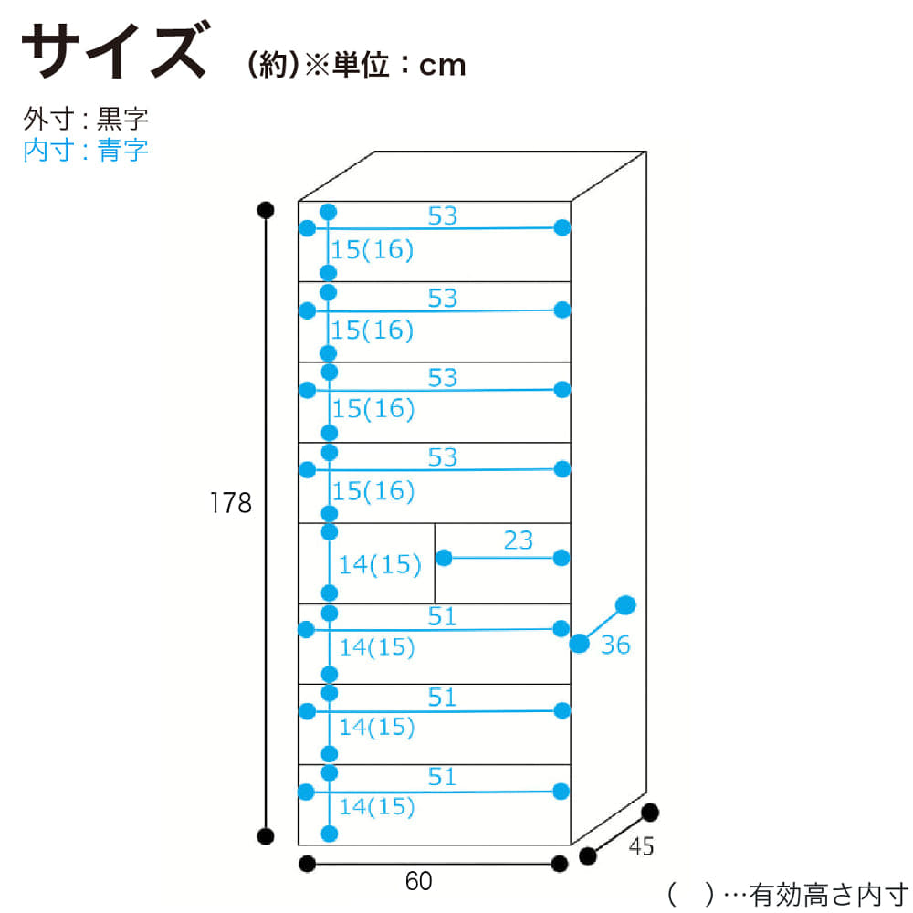 サイズ: | 幅61cm×奥行45cm×高さ179cm |