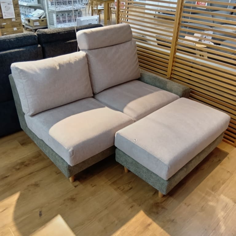 【ホームズ和光店 関東一部地域限定 展示特価品】 片肘2人掛けソファ(ヘッドレスト、スツール) フォーム112PLハードBFBE/LAMC脚12 スツール ヘッドレスト
