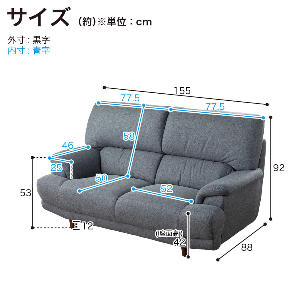 | サイズ: | 幅155cm×奥行88cm×高さ92cm(座面高42cm) |
