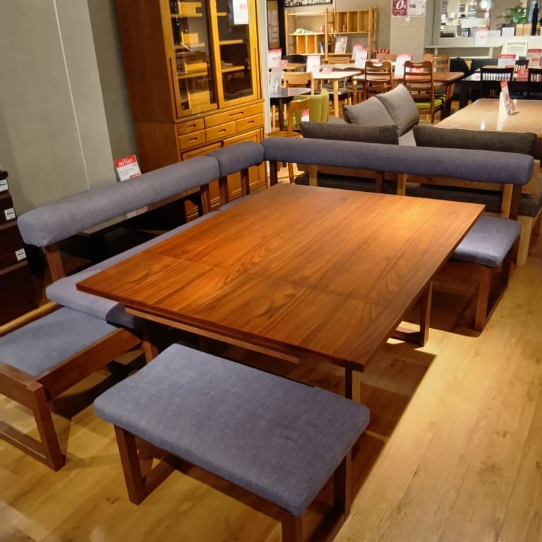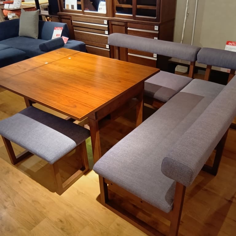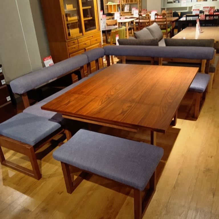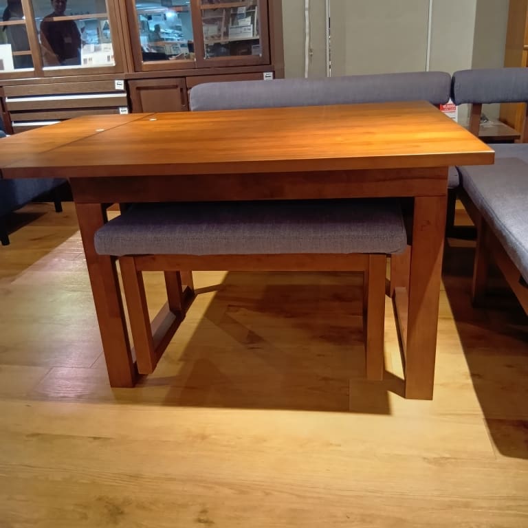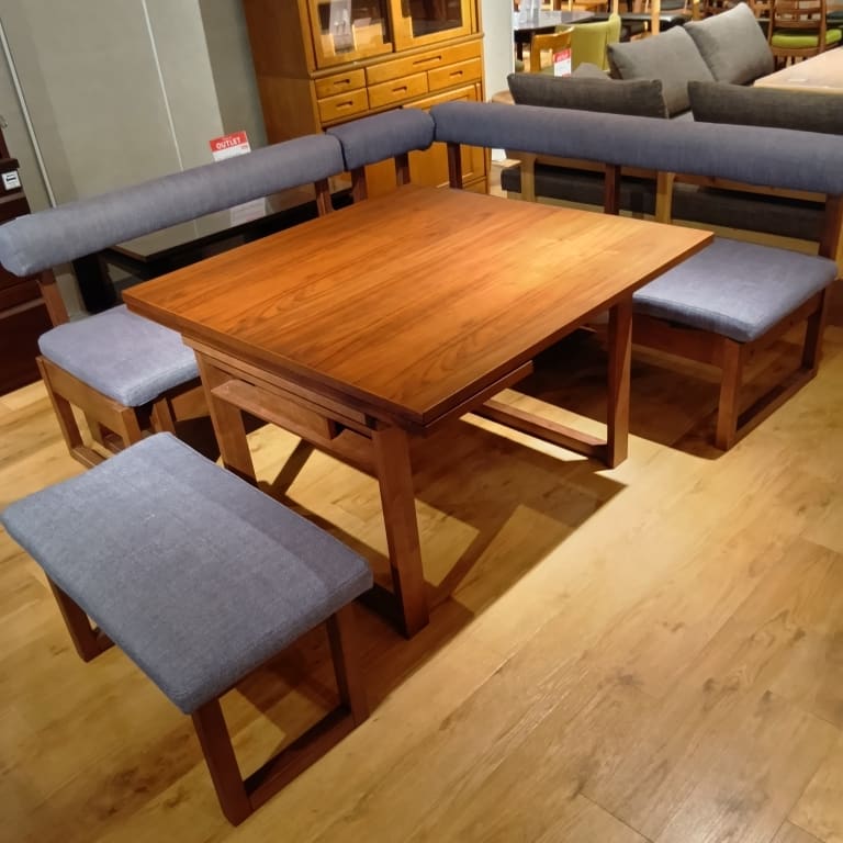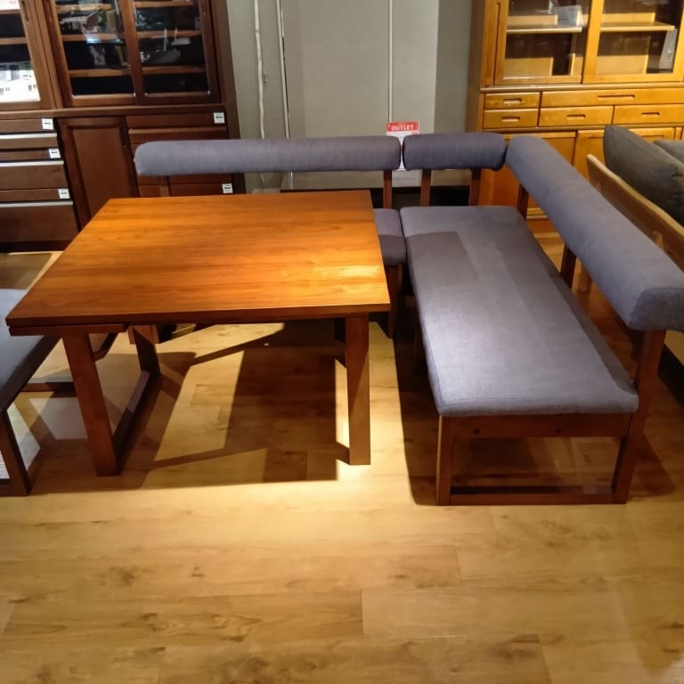 【ホームズ荏田店 関東一部地域限定 展示特価品】 LD4点セット120伸長チェアL WN/NAV 162チェア WN/NAV アーム WN/NAV 100伸長テーブル WN 73ベンチ WN/NAV