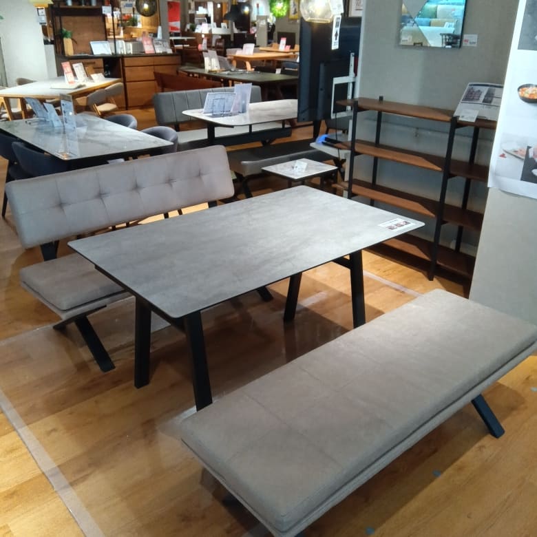 【ホームズ荏田店 関東一部地域限定 展示特価品】 ダイニングテーブル クレモナ 135 アッシュGY クレモナ 背付ベンチ GY クレモナ 背無ベンチ GY