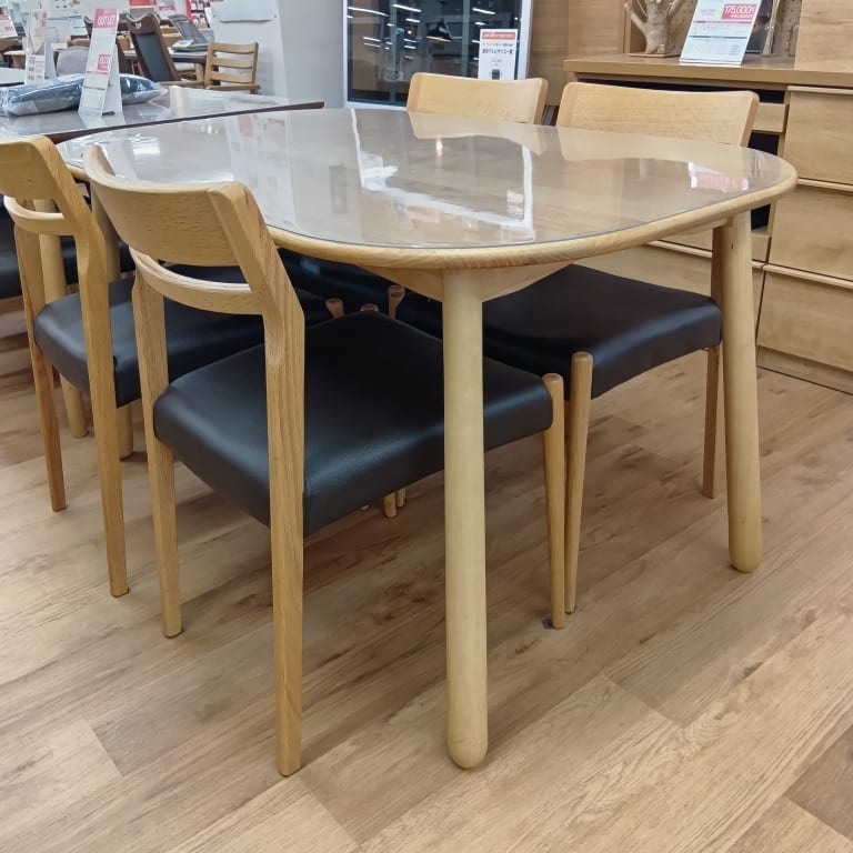 【新座店 関東一部地域限定 展示特価品】 ダイニング5点セット(チェアカバー、テーブルマット付) W/Oセレクト135楕円 GAチェア NR W/Oセレクト GAチェア NR W/Oセレクト GAチェア用カバー PSマット 変形 80*135