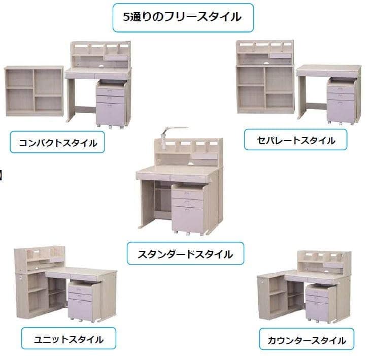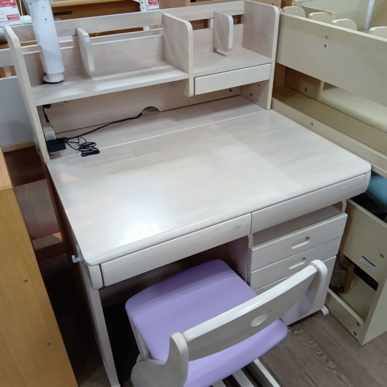 【東戸塚店 関東一部地域限定 展示特価品】 組みかえ型デスク[ライト+チェア付] ESフレクスMMD-523 WW-WW HCL-8W WC-16WW-PA ホワイトW・パープル