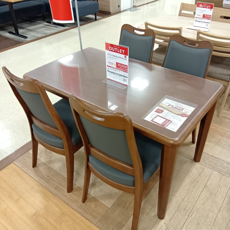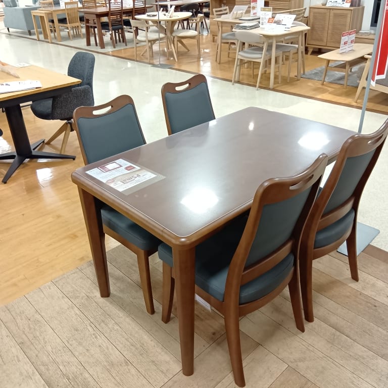 【ホームズ小平店 関東一部地域限定 展示特価品】 ダイニング5点セット(PSマット付) ダイニングテーブル CCM 125-75Z 4本脚BR DC ロード背張り BR PSマット角型80×135