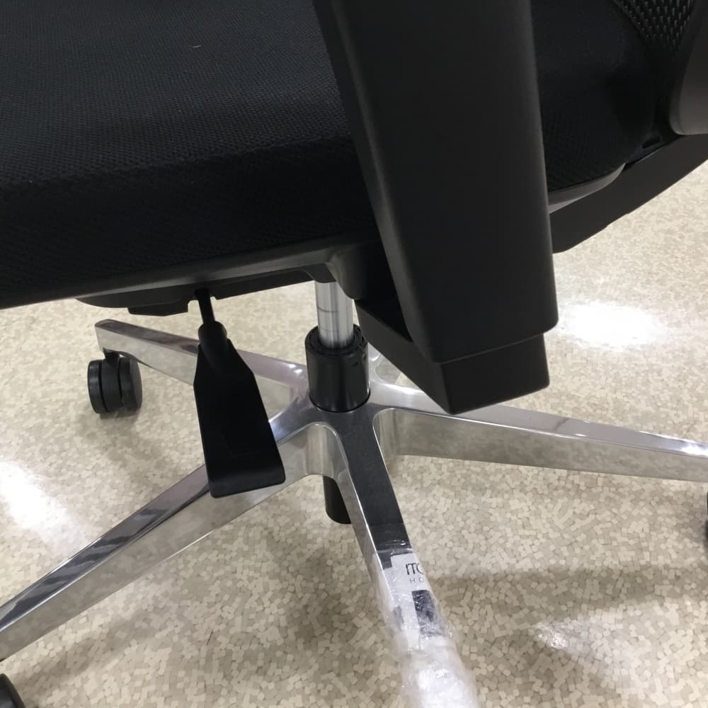 ◆アジャスタブル肘は9段階の調節が可能。肘が接する面には柔らかなポリウレタンで肘への負担を軽減。